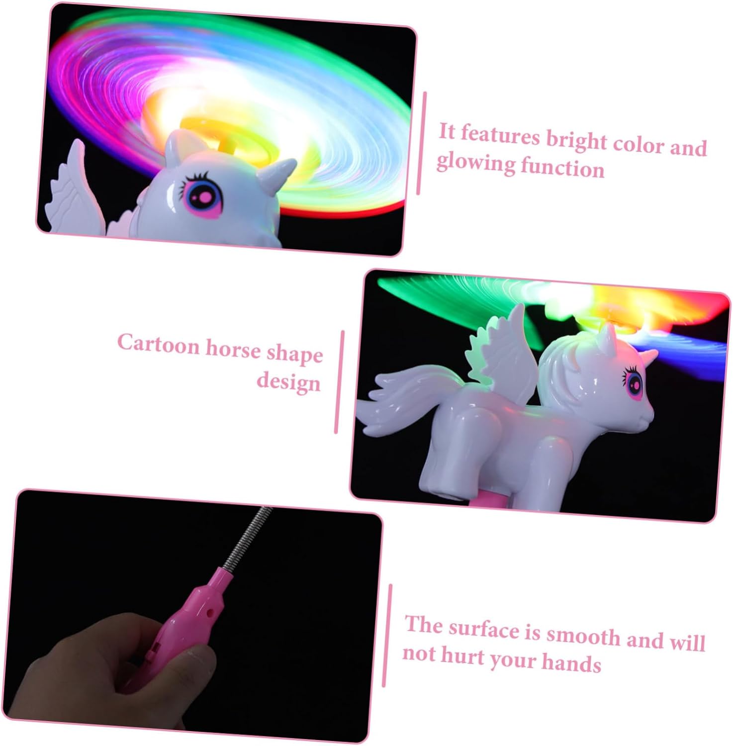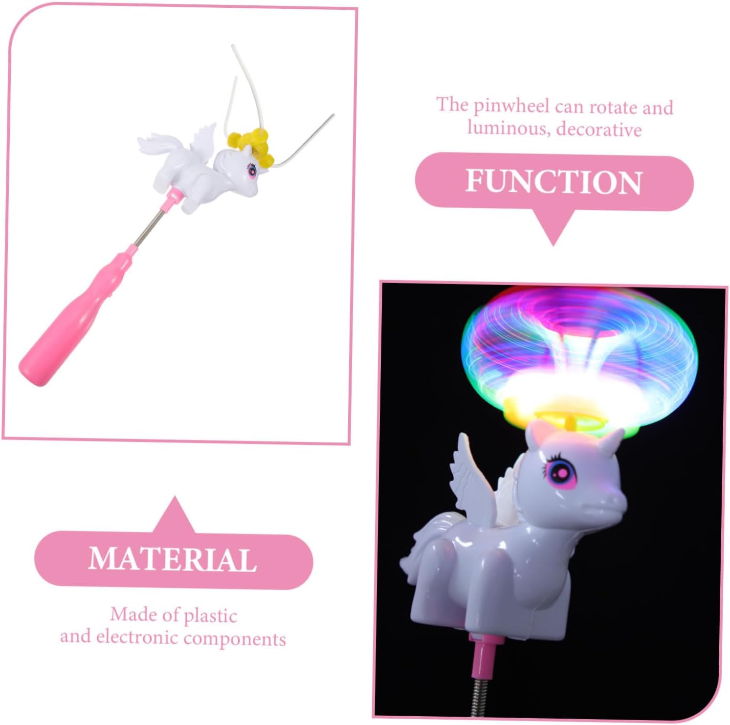 Bastone per torcia: a scelta, questi giocattoli sono resistenti all'usura e hanno una girandola luminosa. Girandole: perfette per travestirsi e giocare di ruolo. Le tue bambine saranno attraenti. Bastone luminoso del mulino a vento Mulino a vento luminoso per: il metodo di gioco è semplice, divertente e interessante. Carica la batteria e apri la bacchetta LED rotante Giocattolo mulino a vento: per apparire come una fata o una principessa alla festa di Halloween o altre festività, giocattolo leggero portatile Mulino a vento: con design a forma di cavallo da cartone animato, la girandola può ruotare ed è una girandola lampeggiante decorativa luminosa