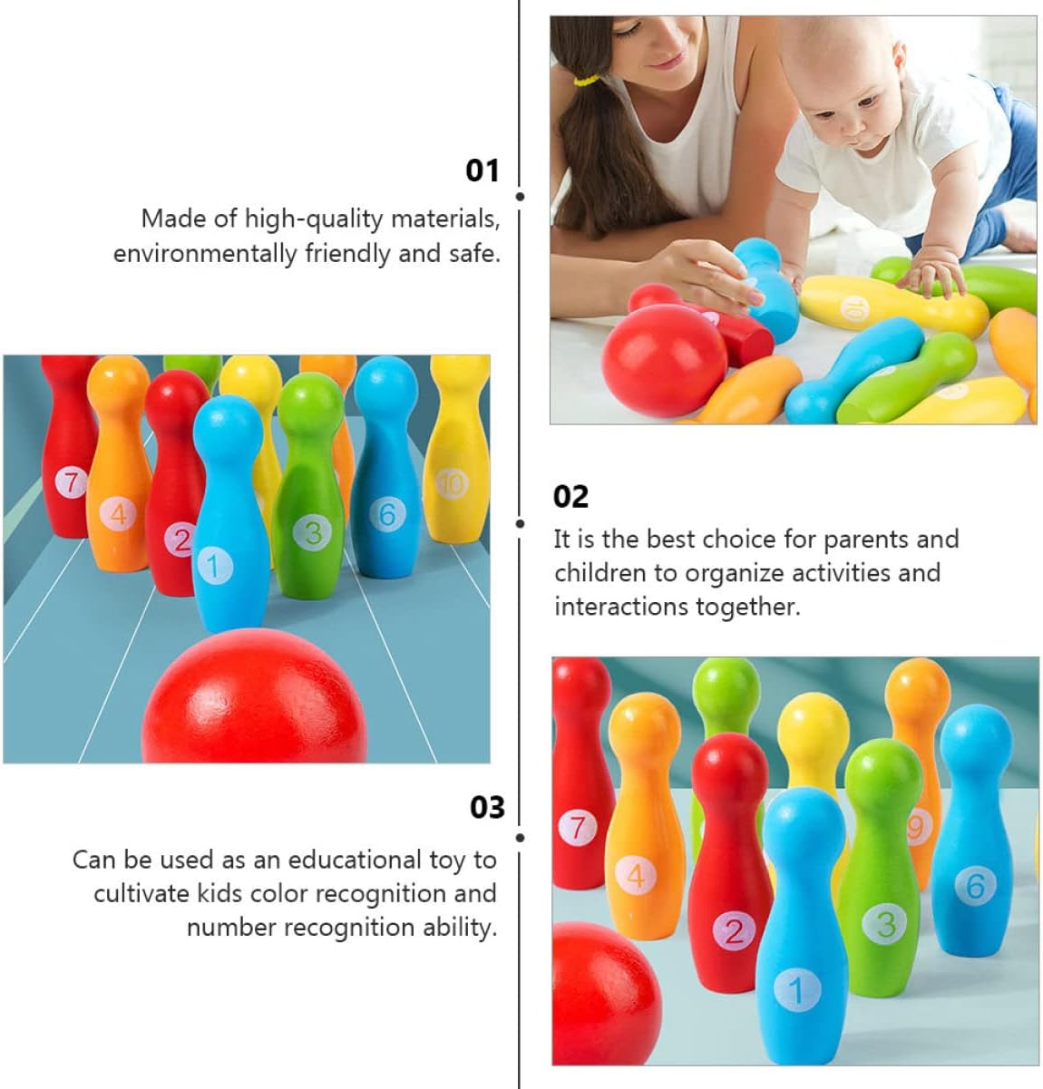 Giocattolo educativo per - può essere utilizzato come interattivo genitore-figlio per rafforzare la relazione genitore-figlio, giocattolo da bowling per giocattolo da bowling per - realizzato in materiale di legno di alta qualità, riutilizzabile, materiale educativo, giocattolo per bambini - contribuisce anche all'intelligenza educativa, perfetto per l'allenamento fisico del tuo bambino, accessori per giocattoli per bambini Giocattolo educativo da bowling: è la scelta migliore per genitori e figli per organizzare attività e interazioni insieme. Giocattoli da bowling Giocattoli da bowling in legno - Può aiutare i bambini a migliorare le loro capacità motorie, la coordinazione occhio-mano, le capacità di osservazione e il pensiero logico. giochi da bowling per bambini piccoli