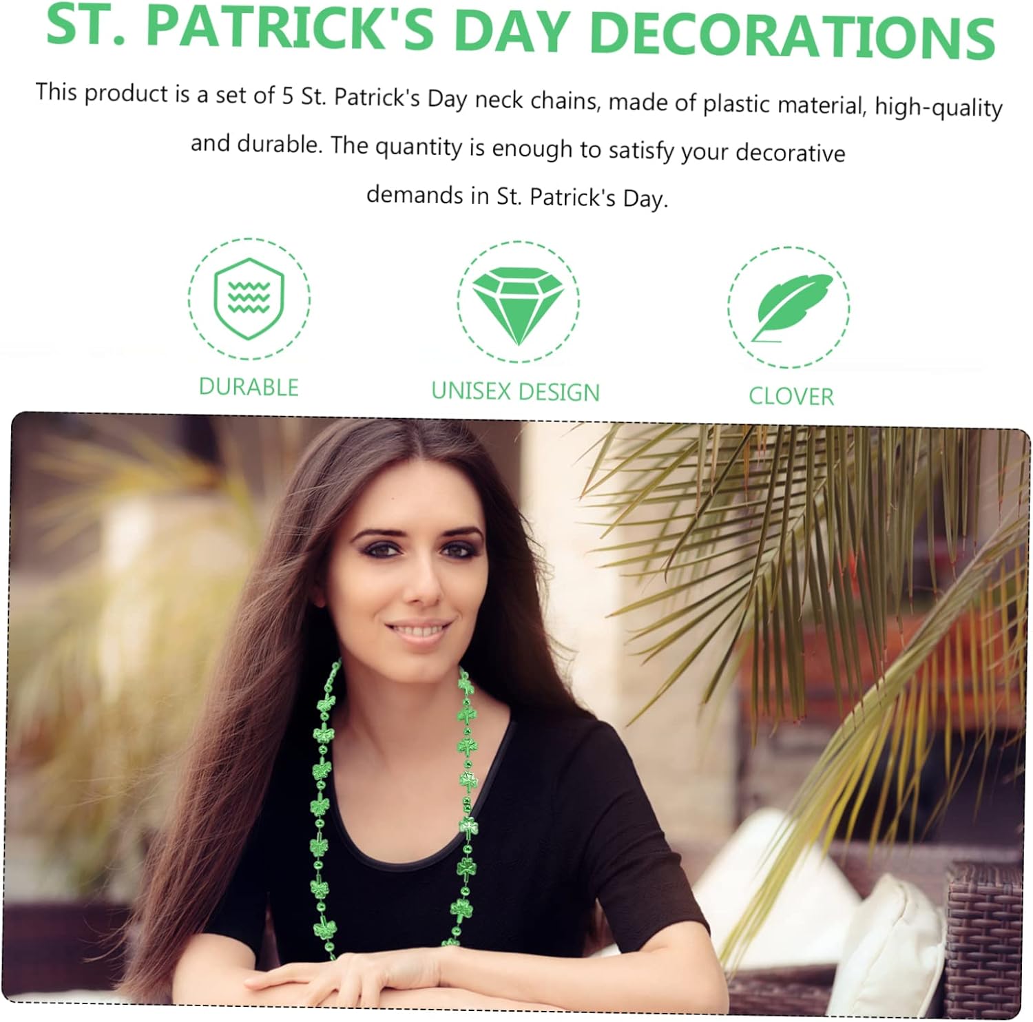 Il pacchetto include 5 collane (5 stili) Caratteristiche - Materiale: Decorazione in plastica per la parata irlandese. - Adozione di materiale plastico di prima qualità, robusto e per un uso a lungo termine. Collana Ireland Festival. - Presenta un design ispirato al di San Patrizio, perfetto come collana decorativa per le feste. - La collana Ireland Festival è il perfetto per la tua famiglia, i tuoi , i tuoi amici e i tuoi colleghi. La adoreranno. - Leggero e portatile, non aumenterà il tuo carico extra di accessori per la festa di San Patrizio. - Un set di 5 collane per il di San Patrizio, quantità sufficiente a soddisfare le tue esigenze per le feste Collana per il di San Patrizio. Informazioni sulle merci Bomboniera per la festa di San Patrizio, adatta ad adulti e . Collana verde per la festa di San Patrizio, realizzata in materiale plastico di alta qualità. Collane per la festa di San Patrizio. Fantastici oggetti decorativi per te. Collana per la festa dell'Irlanda. Il tema di queste perline è... Collana di perline. Questo articolo è un set di 5 pezzi.