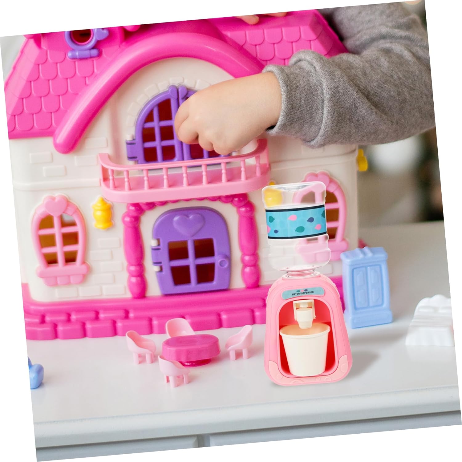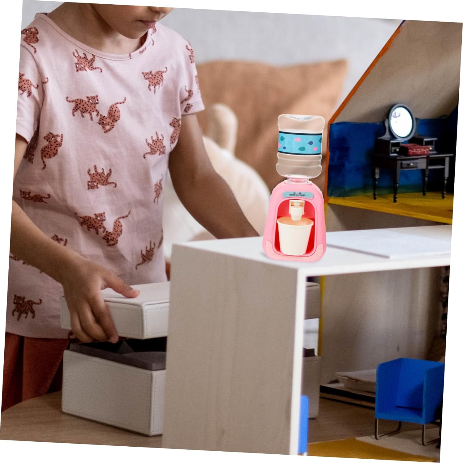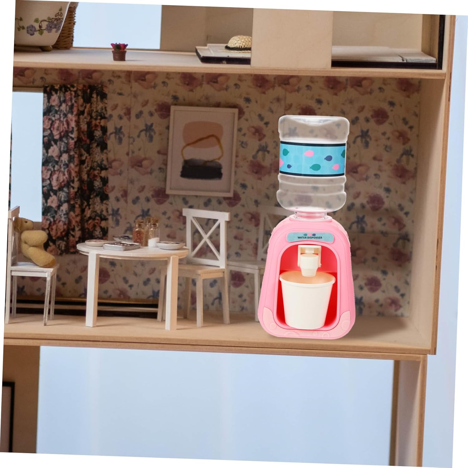 Elettrodomestico simulato: può portare ore di divertimento ai bambini e aiutarli a sviluppare abilità di vita, modelli per bambini Piccolo distributore d'acqua unisex: i cartoni animati e la forma rendono questo modello di distributore d'acqua squisito e bello, bellissimo modello di fontana d'acqua Fontana d'acqua in miniatura - realizzata in plastica sicura, sicura e adatta, Distributore d'acqua in miniatura Modello di audizione unisex: compatto nelle dimensioni e leggero, questo modello di distributore d'acqua in miniatura è un meraviglioso modello di elettrodomestico da cucina modello di fontanella: l'acqua scorre lentamente, il che è buono come decorazione. L'acqua non fuoriesce tutta in una volta dalla tazza, piccolo dispenser d'acqua