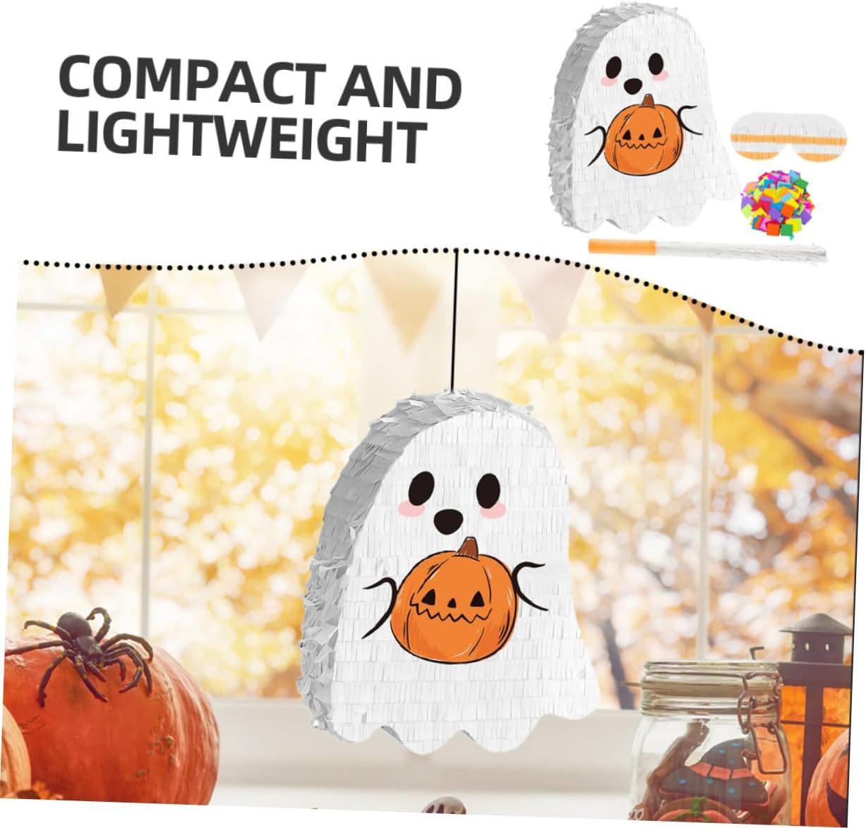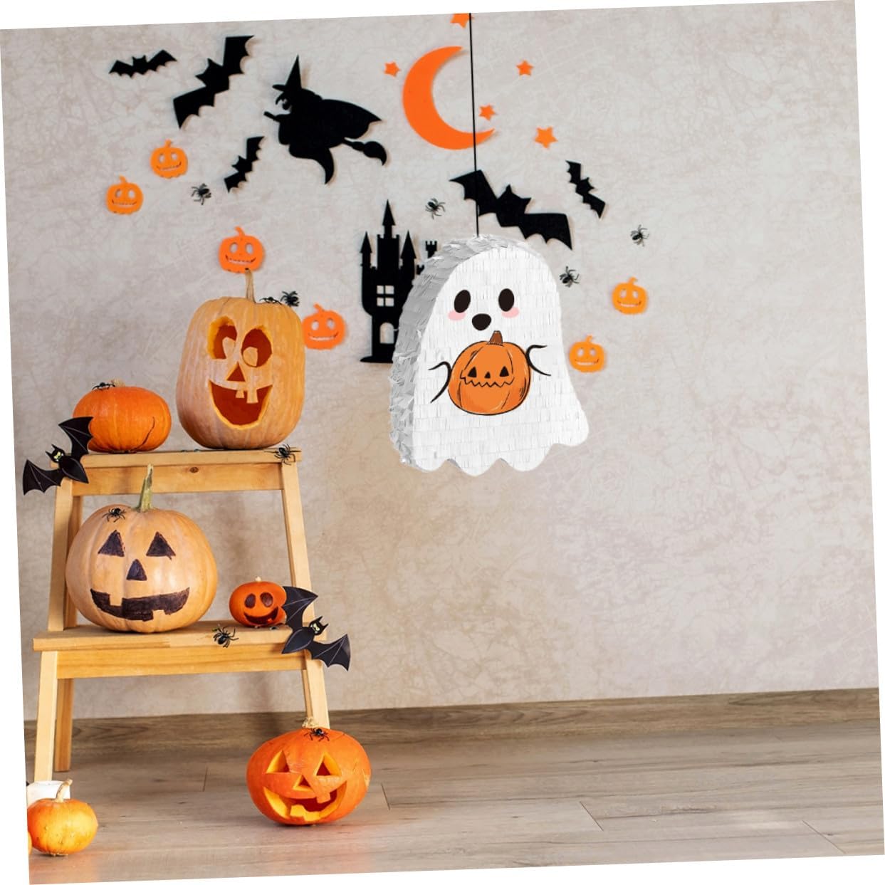 Opzioni di sospensione versatili: adatta a stanze diverse, facilmente appesa in camera da letto, soggiorno o aree esterne per soddisfare le esigenze della tua festa, decorazione di piñata imbottita, decorazione da appendere Versatilità decorativa: il design vivace e inquietante non serve solo come gioco, ma aumenta anche l'attrattiva visiva delle decorazioni della tua festa, degli ornamenti di Halloween e delle forniture per feste Piñata: questa piñata è progettata per contenere una generosa quantità di caramelle e garantisce che tutti prendano parte al divertimento. È quindi ideale per feste di gruppo, come accessorio per le feste di Halloween e come decorazione per le feste di Halloween. Piñata di Halloween: la piñata a forma di fantasma dona alla tua festa un fascino unico e si abbina perfettamente alle decorazioni e ai temi di Halloween. divertente piñata, halloween Divertimento interattivo: incoraggia la partecipazione e le risate di gruppo, rendendola un'attività indimenticabile per e adulti in occasioni festive, ornamenti fantasma, piñata