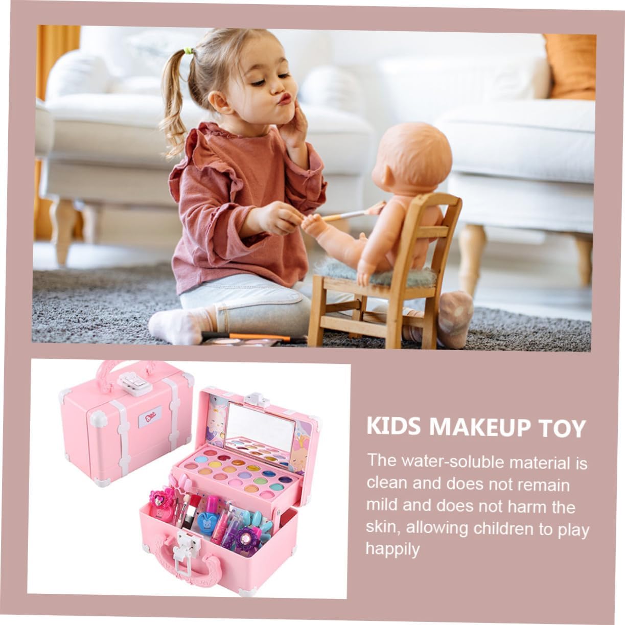 Set trucco per bambini: questo set trucco è realizzato in materiale ABS, per un giocattolo trucco sicuro da usare per: ha un aspetto adorabile e molti colori diversi di ombretto, che possono essere utilizzati per sviluppare la percezione dei colori e la coordinazione occhio-mano dei bambini, gioco di ruolo giocattolo per trucco ragazze: uso di materiale ABS di alta qualità, per il tuo uso, trucco per trucco per: design simulato, interesse per i colori e le forme risvegliate, trucco giocattolo lavabile per giochi di ruolo: lascia che l'immaginazione di tuo figlio si scateni attraverso il divertimento creativo e si innamori per ore di questo molto interessante giocattolo decorativo per ragazze