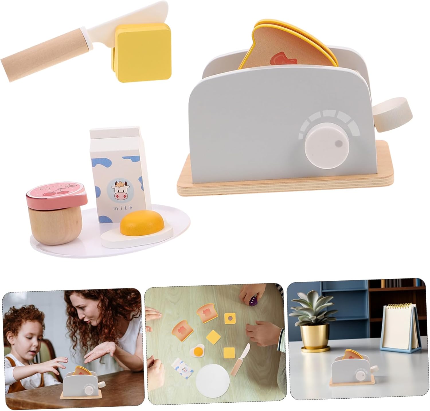 Esperienza di gioco realistica: il giocattolo del tostapane in legno fornisce una simulazione realistica per i bambini che fingono, rendendo la preparazione della colazione nella loro cucina da gioco un'esperienza fantasiosa Lavorazione di alta qualità: l'accessorio per set da cucina è realizzato con robusti accessori da cucina in legno, garantendo durata. Rendendo questo set per tostapane una scelta affidabile per un uso a lungo termine in cucina, giochi di ruolo con giocattoli da cucina e cibo per la colazione per le case delle bambole. Durevolezza: realizzato in legno robusto, questo set di giocattoli in legno resisterà all'uso entusiasta dei giocattoli da cucina da parte dei bambini, pur mantenendo il suo bellissimo aspetto attraverso innumerevoli sessioni di gioco fantasiose. Tostapane e giocattoli per il pane, accessori per set da cucina Questo set da colazione in legno per la cucina sviluppato appositamente per i giocattoli di ruolo rafforza il legame familiare durante il gioco genitore-figlio attraverso esperienze condivise con il set da gioco da cucina, un tostapane in legno e un coltello in legno Interazione genitore-figlio: il giocattolo con uova e toast e il set da colazione in legno promuovono l'interazione tra genitori e figli e rendono il gioco del tostapane una deliziosa attività familiare, giochi di ruolo per bambini, mini tostapane