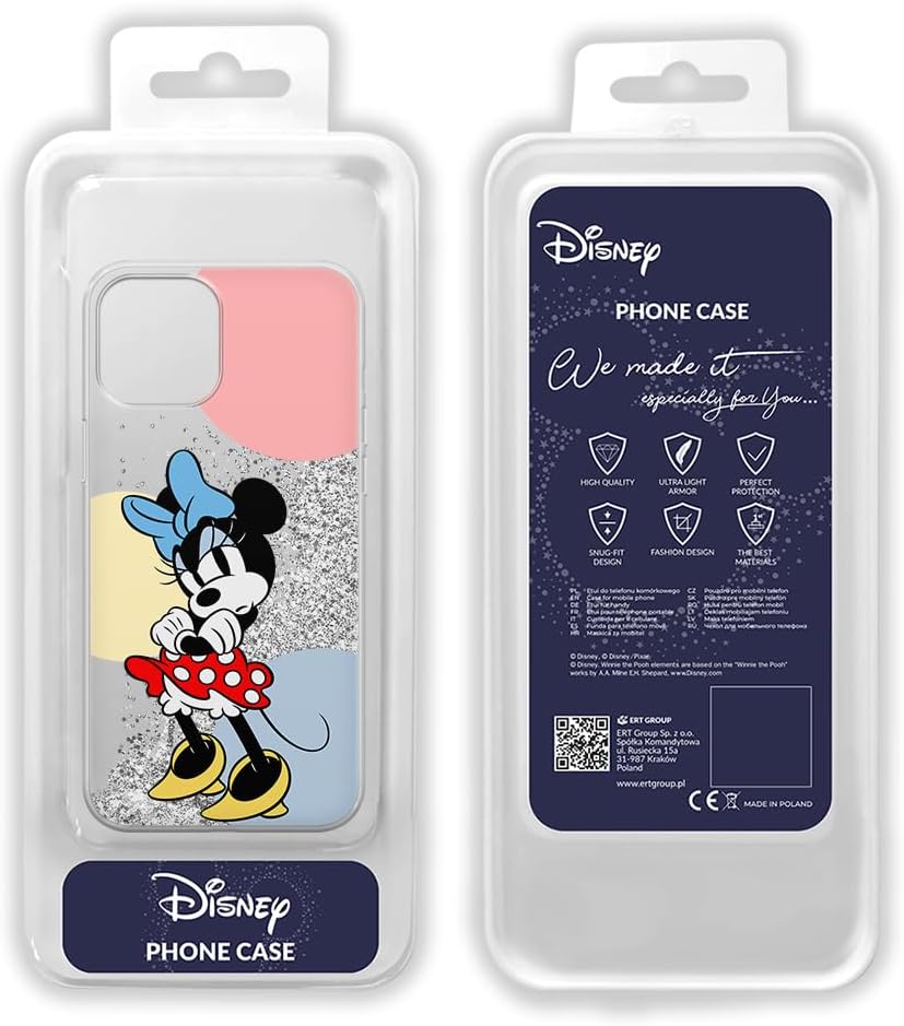Custodia per smartphone originale e con licenza ufficiale. Confermato dai rappresentanti ufficiali della Disney. Il prodotto è concesso in licenza sotto il marchio Disney, pertanto le stampe sono al 100% originali. TPU flessibile: la custodia del cellulare è prodotta in poliuretano termoplastico (TPU), che assicura dettagli grafici colorati. Il guscio dello smartphone in TPU è caratterizzato da un'elevata elasticità e resistenza all'abrasione. Design unico: migliora l'aspetto del telefono ed enfatizza il tuo stile unico e la tua individualità proteggendo il tuo telefono. Parte della custodia è trasparente, consentendo alla grafica di fondersi con il telefono. Inoltre, il design è evidenziato da glitter liquidi. Protezione dello smartphone: la custodia per smartphone è dotata di bordi rialzati in poliuretano termoplastico (TPU) flessibile e di alta qualità, che assicura una perfetta aderenza al tuo telefono, e lo protegge ammortizzandolo in caso di caduta. Sicura e di alta qualità: la robusta custodia per smartphone è certificata REACH per ogni materiale utilizzato. Colpisce per la sua lavorazione accurata, con colori profondi e intensi, e per la sua linea pulita.