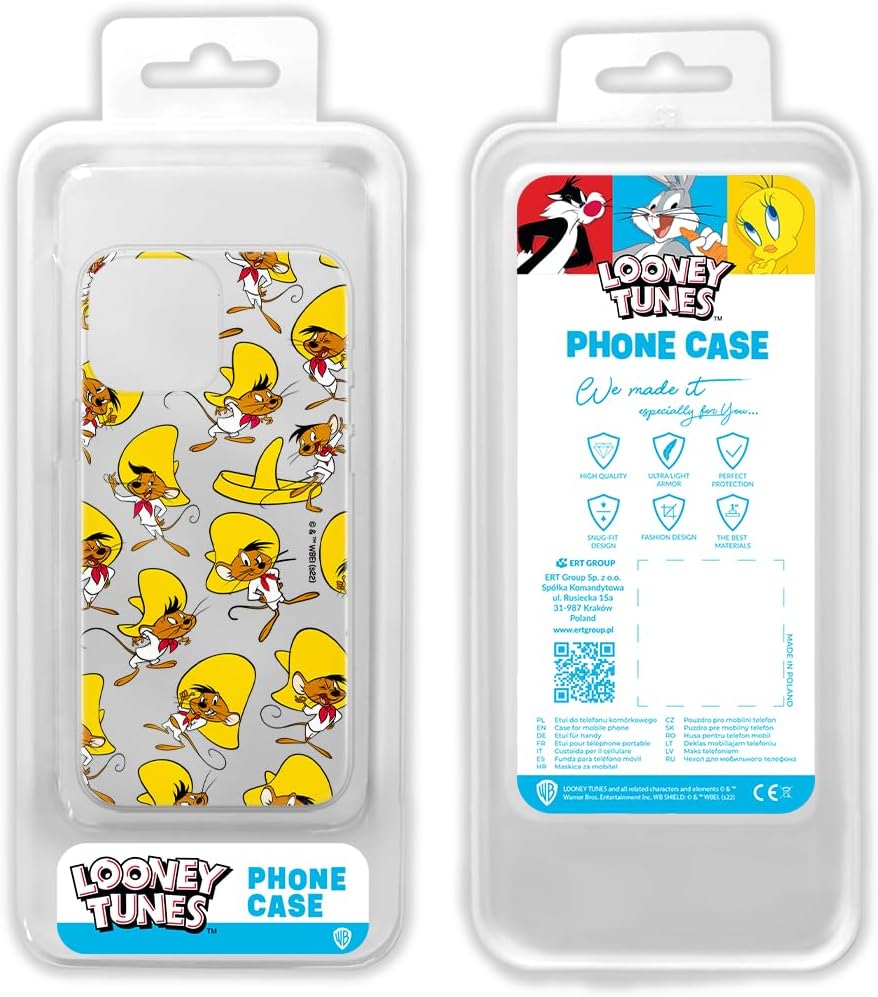 Custodia per smartphone originale e con licenza ufficiale. Confermato dai rappresentanti ufficiali della Looney Tunes. Il prodotto è concesso in licenza sotto il marchio Looney Tunes, pertanto le stampe sono al 100% originali. TPU flessibile: la custodia del cellulare è prodotta in poliuretano termoplastico (TPU), che assicura dettagli grafici colorati. Il guscio dello smartphone in TPU è caratterizzato da un'elevata elasticità e resistenza all'abrasione. La custodia è parzialmente trasparente. Design unico: migliora l'aspetto del telefono ed enfatizza il tuo stile unico e la tua individualità proteggendo il tuo telefono. Protezione dello smartphone: la custodia per smartphone è dotata di bordi rialzati in poliuretano termoplastico (TPU) flessibile e di alta qualità, che assicura una perfetta aderenza al tuo telefono, e lo protegge ammortizzandolo in caso di caduta. Sicura e di alta qualità: la robusta custodia per smartphone è certificata REACH per ogni materiale utilizzato. Colpisce per la sua lavorazione accurata, con colori profondi e intensi, e per la sua linea pulita.