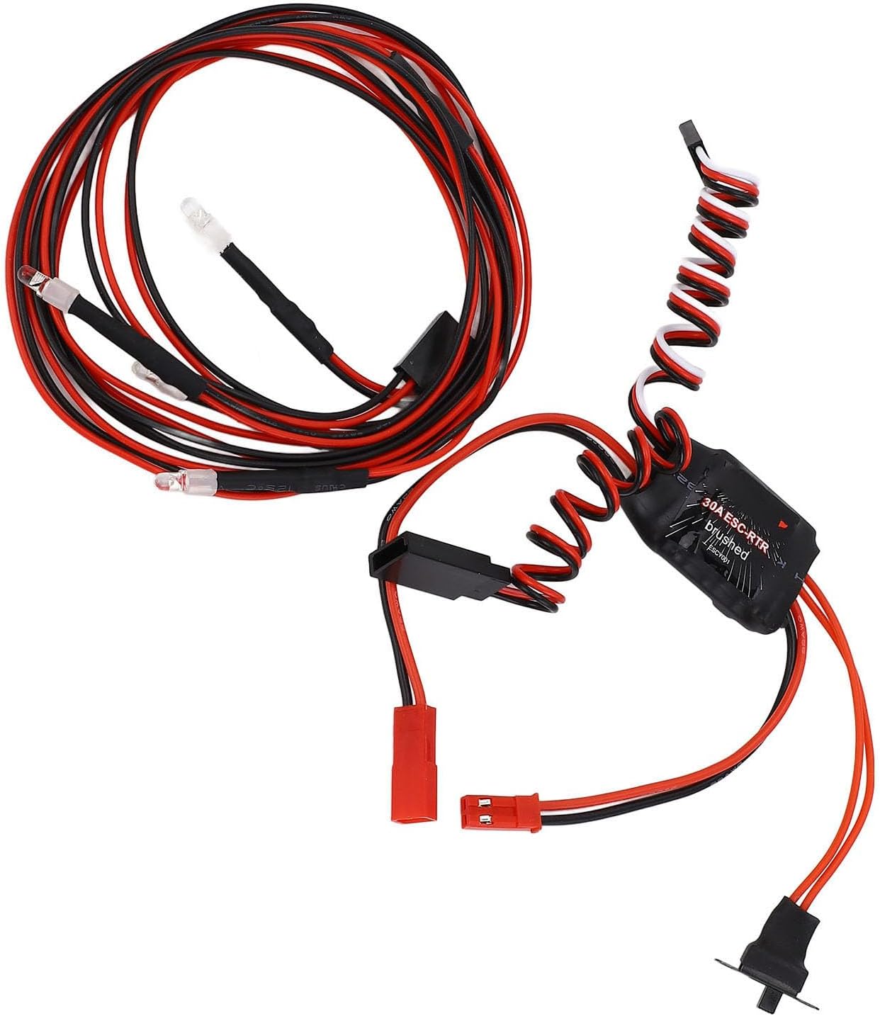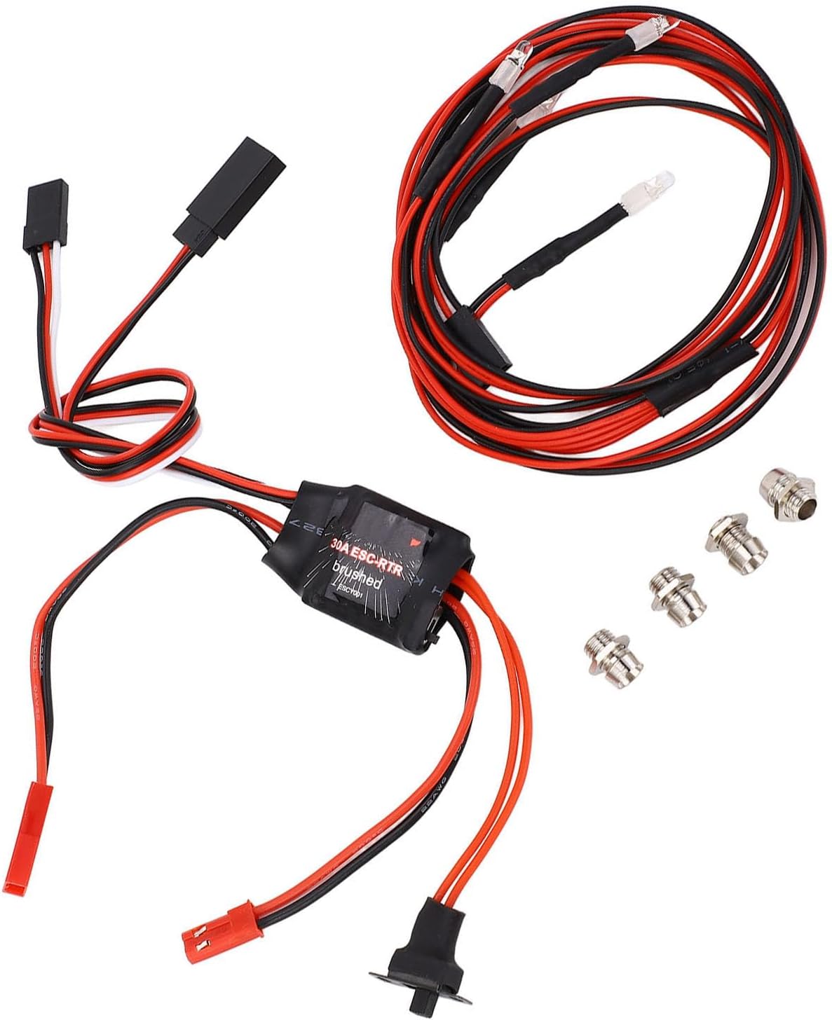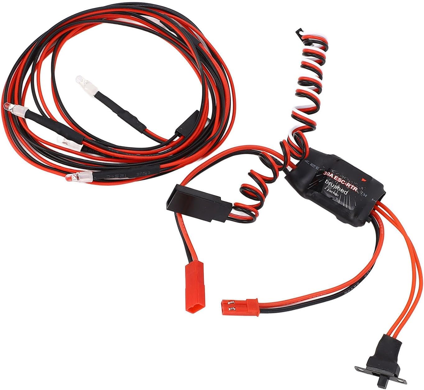 Prestazioni affidabili: l'ESC da 30 A fornisce una corrente continua di 30 A, una corrente di picco di 40 A, garantendo un funzionamento stabile ed efficiente per accelerazioni, decelerazioni e frenate fluide. Doppia via con freno: il micro ESC da 30 A con capacità di freno consente il controllo bidirezionale, consentendo movimenti avanti e indietro precisi e sicuri con l'ulteriore vantaggio del supporto del freno, adatto a una varietà di modelli RC su piccola scala. Ampia compatibilità: ESC con spazzole da 30 A con PCB ad alta precisione e scheda di programmazione digitale, compatibile con una gamma di motori con spazzole tra cui 130/180/260/280/380, nonché auto RC in scala 1/16 1/18 1/24 e barche. Design intuitivo: l'ESC spazzolato RC 30A è compatto e leggero, facilitando l'installazione e l'utilizzo per gli appassionati di RC di tutti i livelli. Il suo semplice funzionamento aggiunge comodità alla tua esperienza RC. Luce LED bianca rossa: il controller di velocità con spazzole da 30 A viene fornito con un gruppo luci modificato per adattarsi all'ESC. Migliora l'aspetto delle auto e dei modelli RC, rendi la tua auto più fresca di notte.