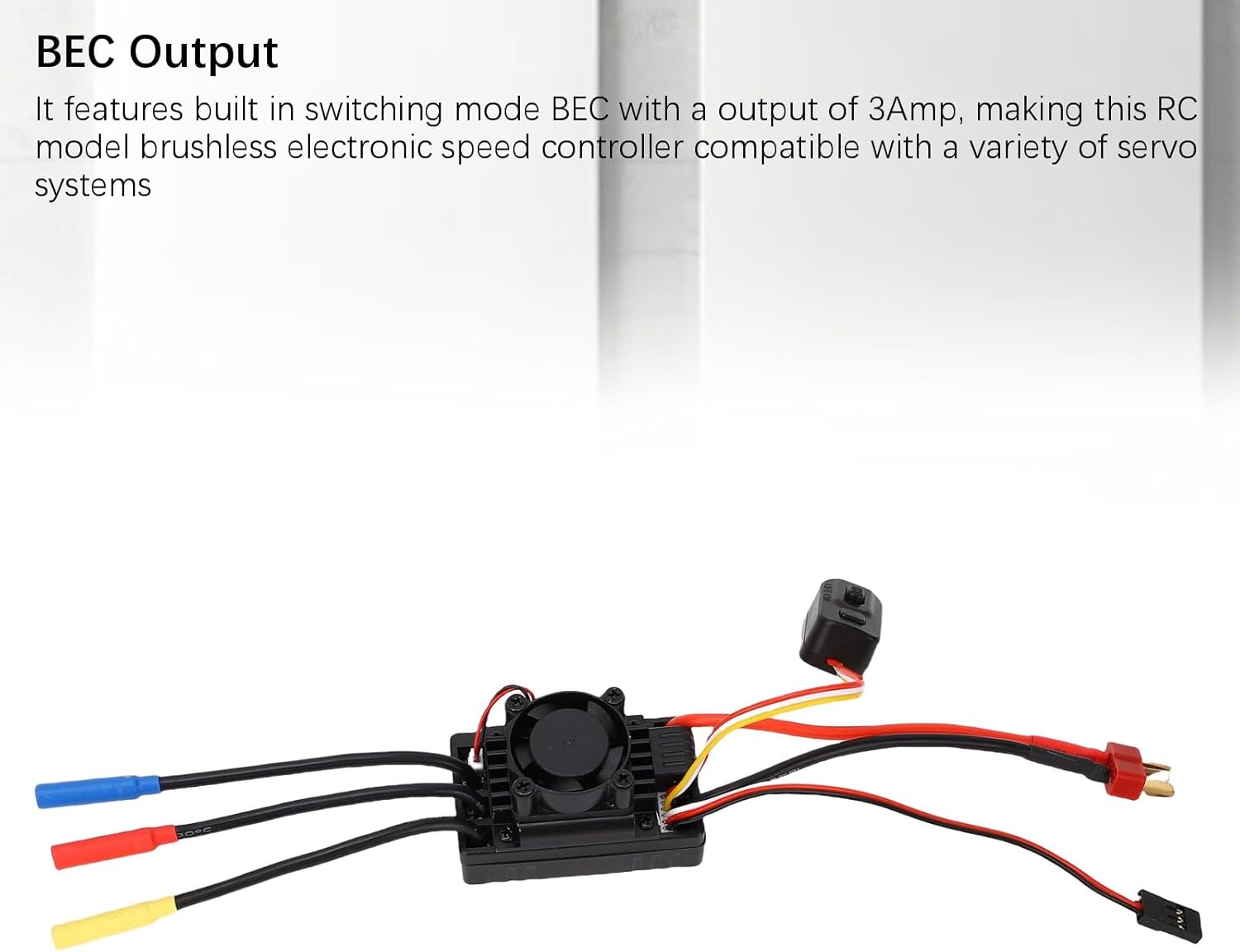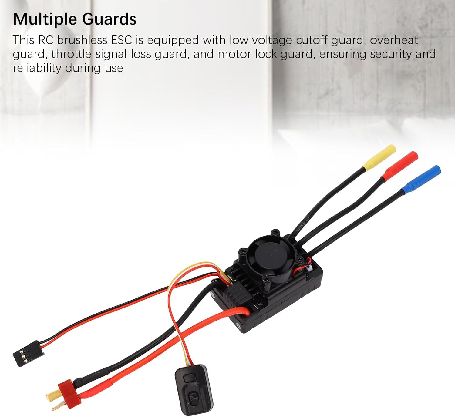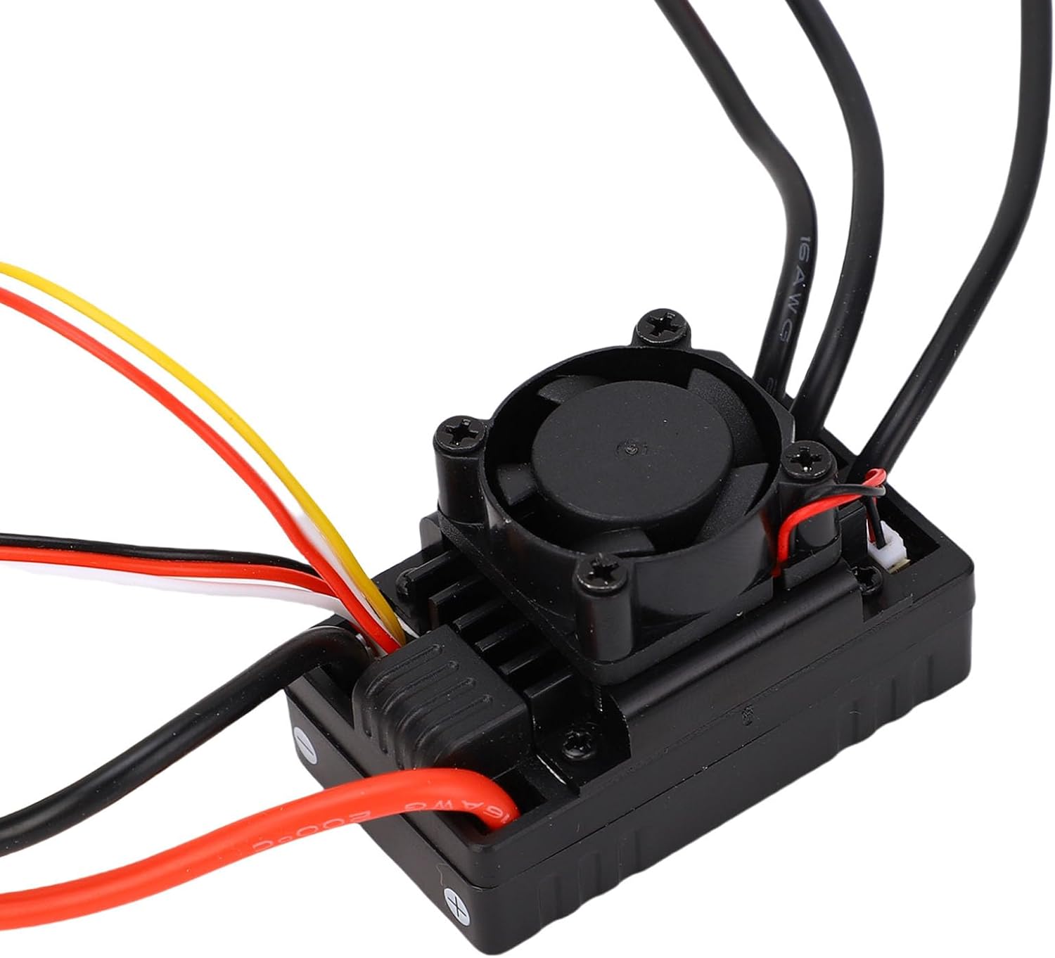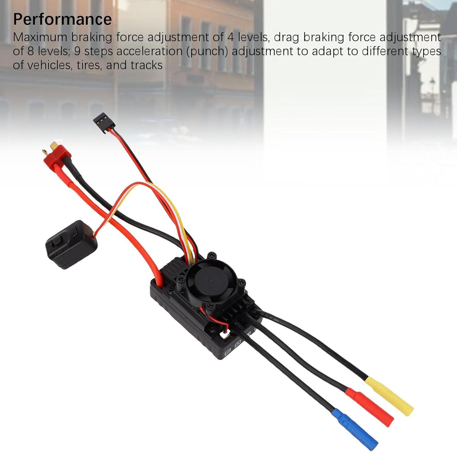 Resistente all'acqua e alla polvere, il regolatore di velocità elettronico con sensore brushless da 60 A per modelli di auto con prestazioni impermeabili e antipolvere, che lo rendono adatto a tutte le condizioni atmosferiche Protezioni multiple: questo ESC brushless RC è dotato di protezione limite di bassa tensione, protezione da surriscaldamento, protezione dalla perdita del segnale dell'acceleratore e protezione del blocco motore per garantire sicurezza e affidabilità durante l'uso Prestazioni: regolazione massima della forza frenante di 4 livelli, regolazione della forza di resistenza dell'aria di 8 livelli; L'accelerazione a 9 passi (punzone) si adatta a diversi tipi di veicoli, pneumatici e piste. Applicazione: con la porta di programmazione esterna, può essere facilmente regolata quando si regola l'ESC. Questo ESC senza spazzole è adatto per auto di breve durata, passeggini e altro per uscita BEC in scala 1/10: ha una modalità di commutazione BEC incorporata con un'uscita di 3 A, che rende questo controller di velocità elettronico senza spazzole per modelli RC compatibile con una varietà di servosistemi