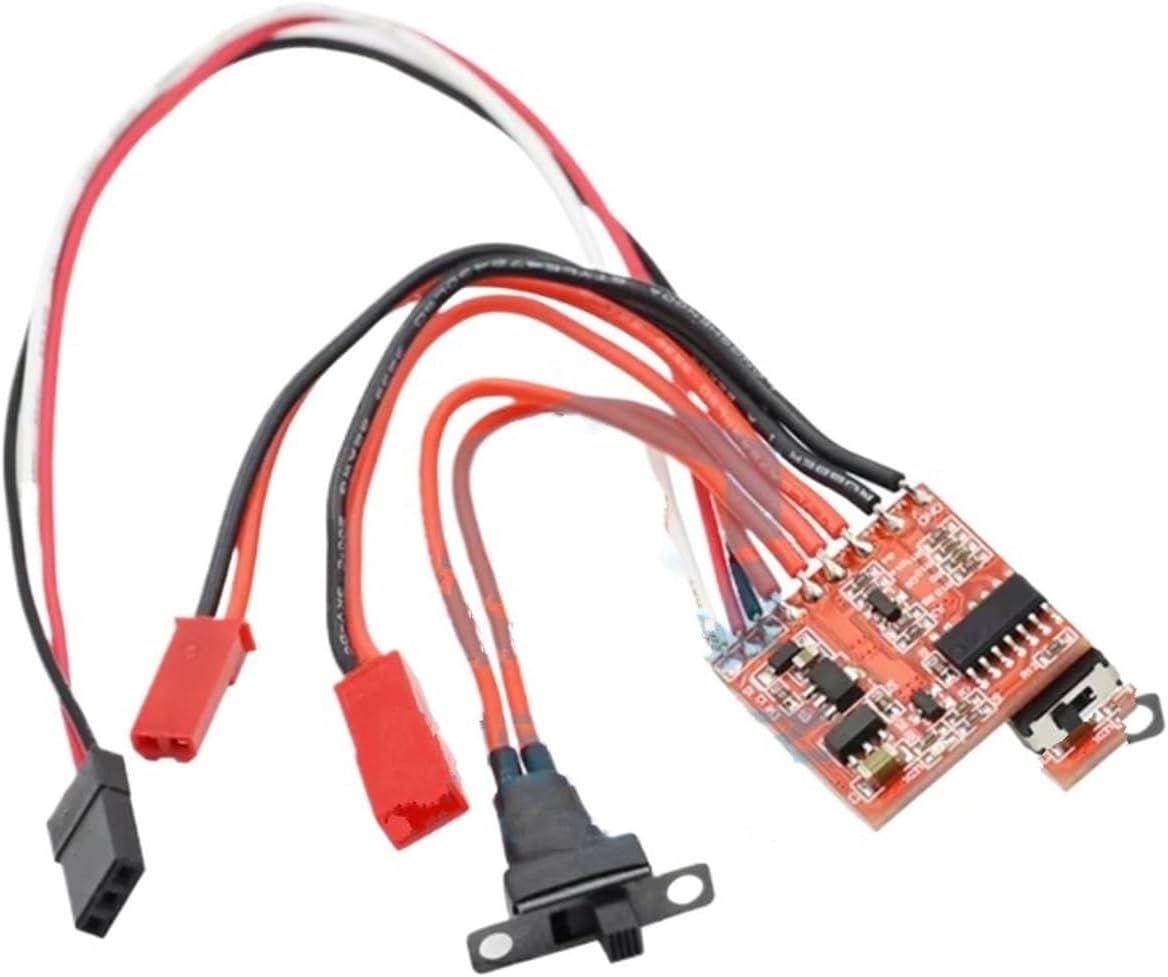 Materiale: l'ESC RC è realizzato con materiali speciali, motori brushless senza sensori, con linearità dell'acceleratore ultra precisa; Caratteristiche: interruzione di bassa tensione in caso di surriscaldamento della batteria o perdita del segnale di limitazione, motore resistente al calore con ventola di raffreddamento integrata, cuscinetto di corrente per capacità e uscita integrata per capacità; Installazione: l'installazione è molto comoda, plug and play; indipendentemente da dove si trovi l'acceleratore quando è collegato alla batteria, il motore non ruoterà; Funzione: L'ESC RC è il regolatore di velocità per modelli radiocomandati. Essenzialmente, è costituito da un interruttore e un trasformatore, che convertono in modo accurato ed efficiente l'energia elettrica fornita dal radiocomando nella potenza che aziona il motore. È il cuore del gruppo propulsore del modello; Nota: questo prodotto deve essere compatibile con la tua macchinina. Si prega di confrontare attentamente la compatibilità prima dell'acquisto. Per qualsiasi domanda, non esitate a contattarci;