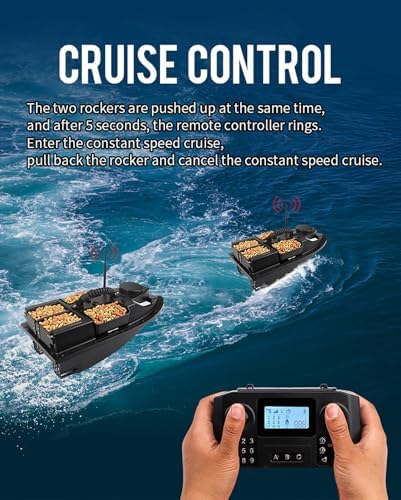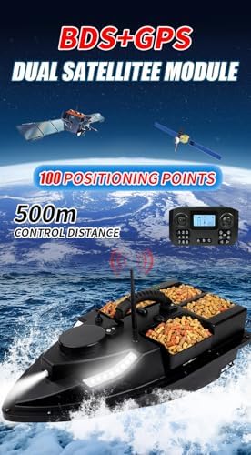 Migliora la tua esperienza di pesca con un telecomando GPS intelligente barca esca da pesca con ritorno automatico a casa, 100 punti di posizionamento GPS e 7 luci colorate per la pesca notturna. Rilascio dell'esca senza sforzo con 4 tramogge separate in grado di caricare circa 2 kg di esca e gancio, telecomando impermeabile e correzione automatica dell'imbardata per una facile navigazione. Tecnologia GPS avanzata con 100 punti di posizionamento e un raggio di controllo remoto di 500 metri, incluso avviso di batteria scarica e ritorno automatico al punto di partenza per sicurezza. Progettato per la pesca notturna con 7 luci a colori regolabili per la navigazione e uno schermo LCD impermeabile che visualizza distanza, alimentazione della batteria e altre funzioni chiave. Dotato di una batteria rimovibile di grande capacità da 7,4 V che offre 6-8 ore di utilizzo, progettata per resistere a forti venti e onde fino a 5-6 livelli con doppio motore e funzione impermeabile.