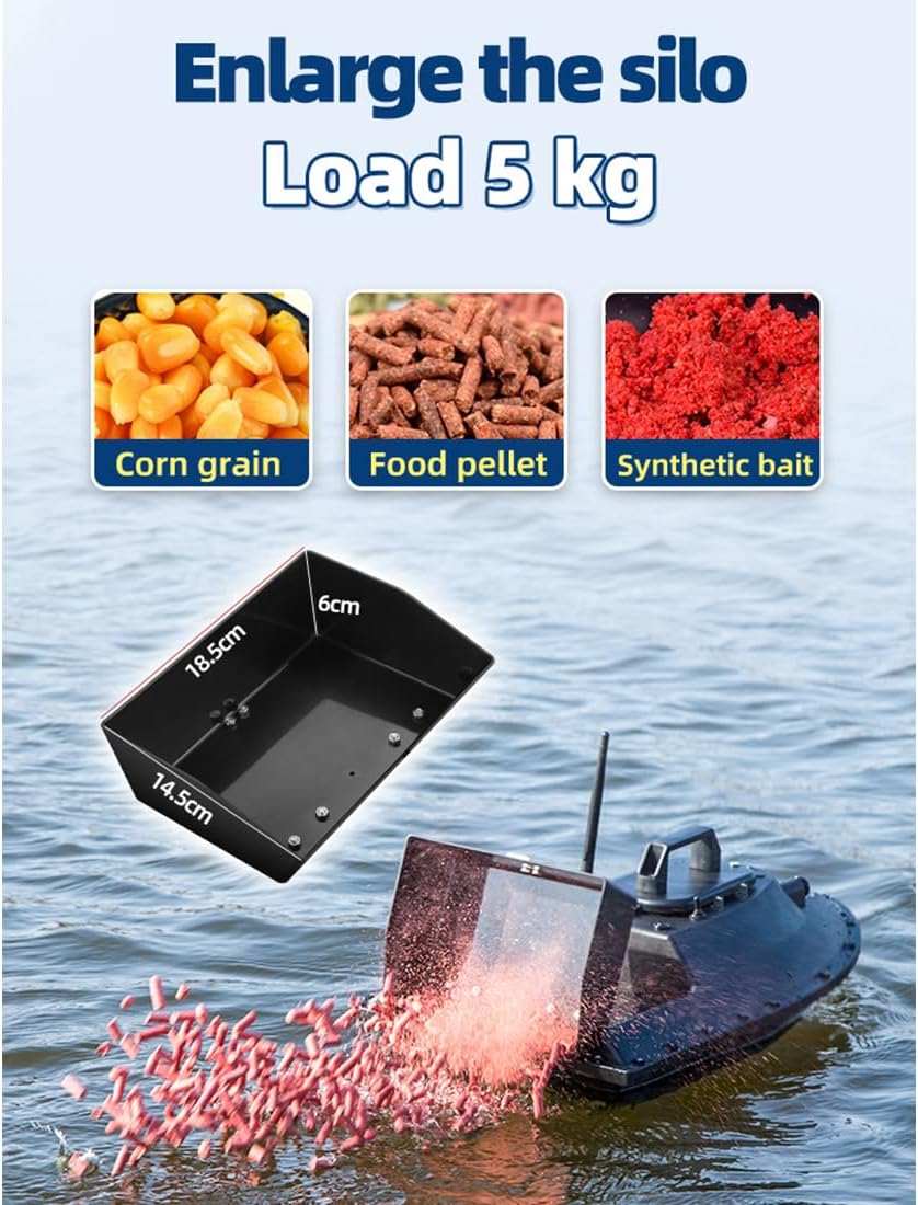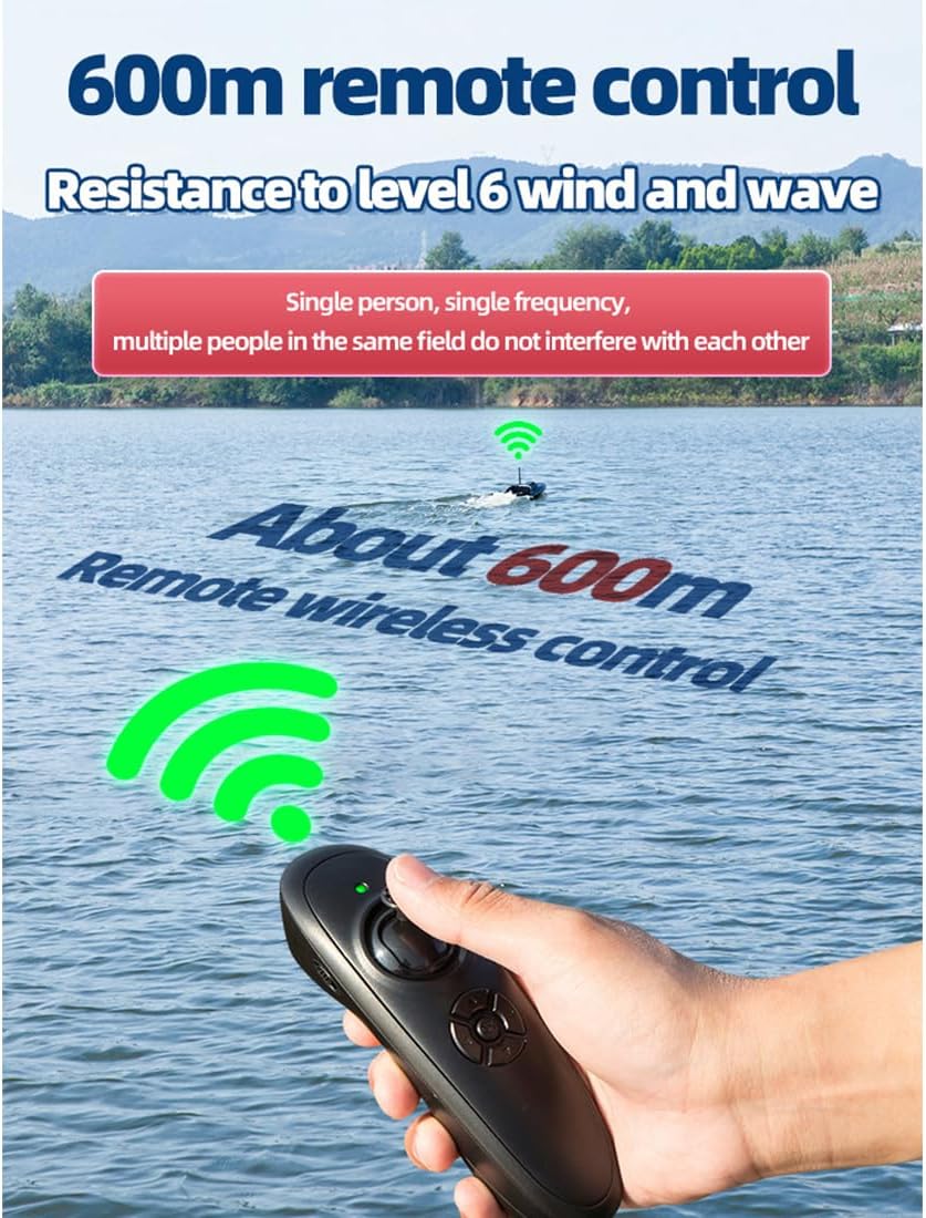 Alta capacità e prestazioni di lunga durata – Questa barca esca RC dispone di una massiccia batteria da 18.000 mAh, offrendo fino a 7 ore di autonomia a bassa velocità, perfetta per sessioni di pesca estese in barca. La tramoggia dell'esca da 2,5 kg garantisce un'ampia alimentazione per barche con esche per la pesca alla carpa GPS intelligente e funzione di ritorno automatico: dotato di 99 waypoint programmabili, cruise control e ritorno automatico a casa quando la batteria è scarica o il segnale è perso, rendendo questa barca esca RC intelligente GPS ideale per il posizionamento preciso dell'esca Potente pesca a strascico e rilascio elettromagnetico: la barca con esca wireless RC supporta la pesca a strascico fino a 50 m con un sistema di rilascio elettromagnetico, perfetta per la pesca in rete e la pesca in acque profonde Controllo stabile e a lungo raggio – Il design a doppio scafo migliora la stabilità nelle onde, mentre la portata remota di 600 m garantisce un funzionamento regolare anche con venti Force 6, rendendolo una delle migliori barche rc per adulti Regalo perfetto per gli appassionati di pesca – Dispone di 3 velocità regolabili (bassa/media/alta) per esca precisa o pesca a strascico veloce, questa barca RC per adulti è un must per i pescatori seri ed è un ottimo regalo per gli amanti della pesca