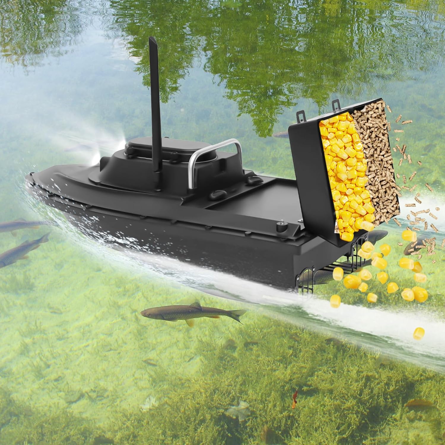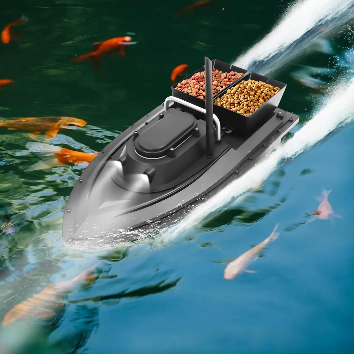 Durevole: il materiale ABS di alta qualità è atossico e inodore, con forte resistenza agli urti e all'abrasione, e il processo di sabbiatura rende l'aspetto del prodotto ancora più liscio, garantendo una lunga durata. Forte resistenza al vento: il design aerodinamico dello scafo riduce la resistenza e aumenta la velocità, mentre il trattamento chiuso nel suo complesso può prevenire efficacemente la fuoriuscita di acqua. Può guidare come al solito con vento a 5 livelli. Distanza di trasmissione lunga: l'antenna della barca (5,9 pollici) riceve segnali senza interferenze da parte del tempo e dell'ambiente, consentendo distanze di controllo remoto fino a 1640,4 piedi, riducendo le limitazioni di utilizzo. Grande capacità: la batteria al litio ricaricabile da 5200 mAh ha una lunga durata e dura fino a 90 minuti con una carica completa per soddisfare le tue esigenze di pesca. Le due scatole per esche possono contenere fino a 4,41 libbre di esche, riducendo la frequenza di deposito delle esche. Telecomando intelligente: con il telecomando da 2.4G, è possibile regolare la direzione della barca, controllare le doppie scatole di esche e utilizzare la funzione Cruise per avere le mani libere.