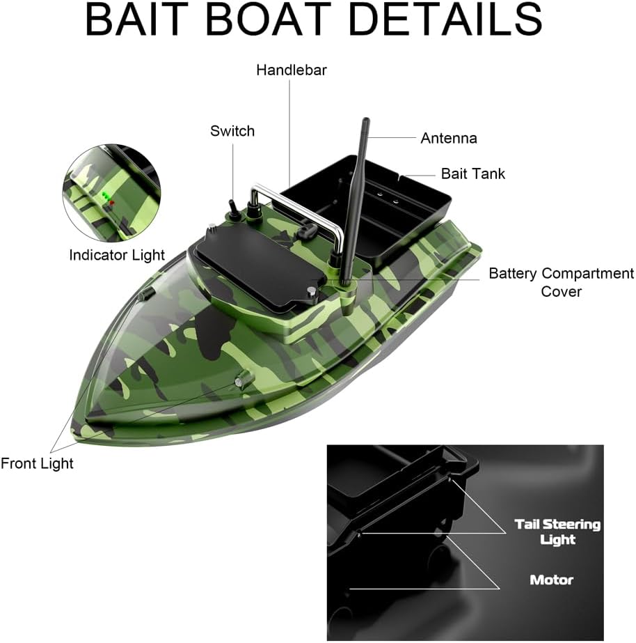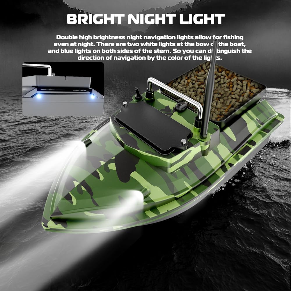 Cruise Control: con un clic per accendere il sistema di controllo della velocità di crociera per mantenere la barca a velocità costante in linea retta, risparmiando tempo e fatica e liberando le mani. Correzione automatica del percorso: sistema di bilanciamento automatico integrato, che può aiutare a correggere automaticamente l'imbardata e garantire che la barca continui a guidare dritto sotto il vento/le onde e il carico. Forte potenza: forte sistema motore a doppia potenza, funzionamento silenzioso, non disturba il pesce. L'elica a tre pale ad alta efficienza può fornire una forte potenza, crociera veloce. Lunga durata e luce notturna: viene fornito con batteria di grande capacità, con 2 cavi di alimentazione, supporta alimentatori ininterrotti di doppia batteria, raddoppiando la resistenza. Con luce anteriore a LED ad alta luminosità e indicatori di direzione, è conveniente per chiaramente Cestino per esche di grande capacità: dotato di un contenitore per esche di grande capacità, la capacità di carico è di circa 2 kg, è possibile controllare il nidificazione a punto fisso a piacimento. Il design anti-sganciamento viene aggiunto al cestino posteriore, che può inviare il gancio e la linea di rilascio