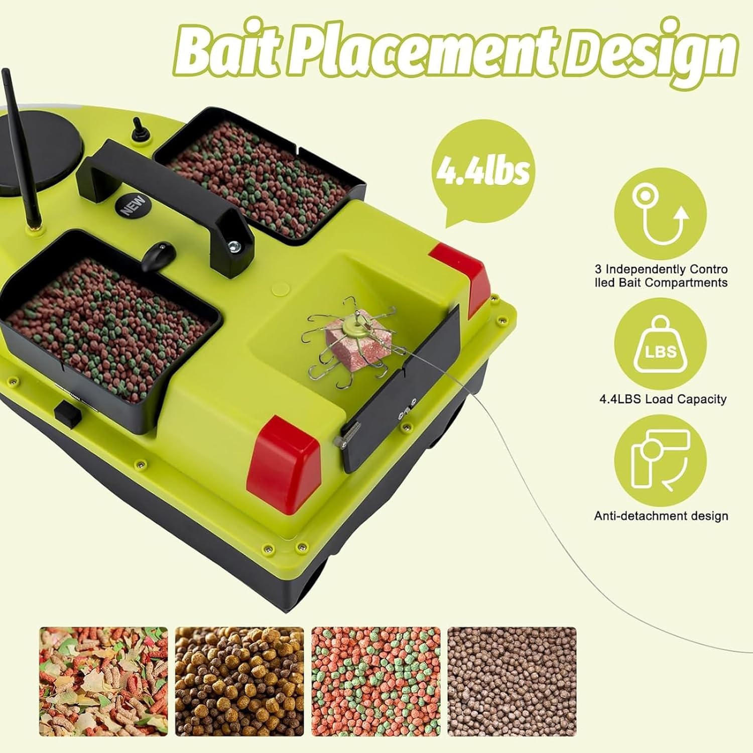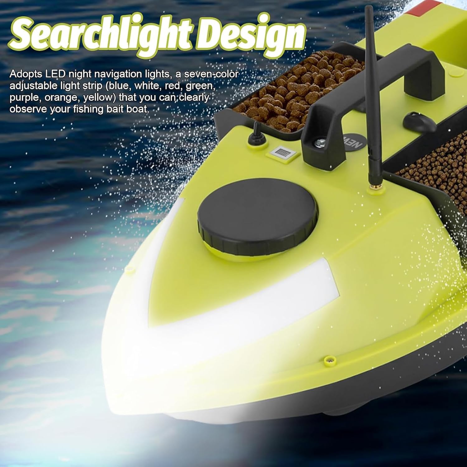 Esca da Pesca, Barca, 600m, Telecomando per Mangimi, 3 Scatole per Esche da Pesca, Barca Senza Fili, con GPS e Faro di Ricerca, Esche da Pesca, Barca per Laghi Fiumi Mari, 99 Punti di Pesca