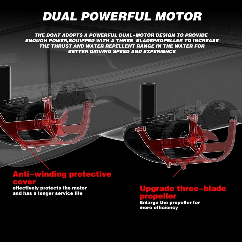 Sistema GPS avanzato con memoria multi-punto: il sistema Beidou + GPS integrato supporta 4 zone di pesca e fino a 160 punti di esca, con caratteristiche come ritorno a un tasto, ritorno della batteria scarica, ritorno della perdita di segnale e ritorno limitato per una maggiore sicurezza e convenienza Design indipendente a 4 esche Hopper: quattro scomparti per esche controllati individualmente consentono un'esca precisa multi-punto, trasportando fino a 3 kg di esca, perfetta per mirare a punti diversi senza dover ricaricare RC affidabile a lungo raggio: le doppie antenne ad alto guadagno forniscono un controllo stabile fino a 500 metri. Supporta la trasmissione a distanza in tempo reale, la consegna della lenza tramite attacco a gancio e l'integrazione opzionale del cercatore di pesci per il massimo controllo della pesca Navigazione intelligente con correzione automatica: naviga con precisione utilizzando i controlli avanti/indietro, sinistra/destra, giroscopio integrato per la correzione dell'imbardata e le modalità di crociera (velocità costante e crociera waypoint). Pianificazione intelligente del percorso anche in acque complesse Supporto doppia batteria e funzionamento notturno: dispone di due linee di alimentazione per alimentazione ininterrotta, avvisi di batteria scarica e luci di navigazione luminose con indicatori anteriori e posteriori. Due modalità di illuminazione (fissa/lampeggiante) rendono la pesca notturna sicura ed efficace