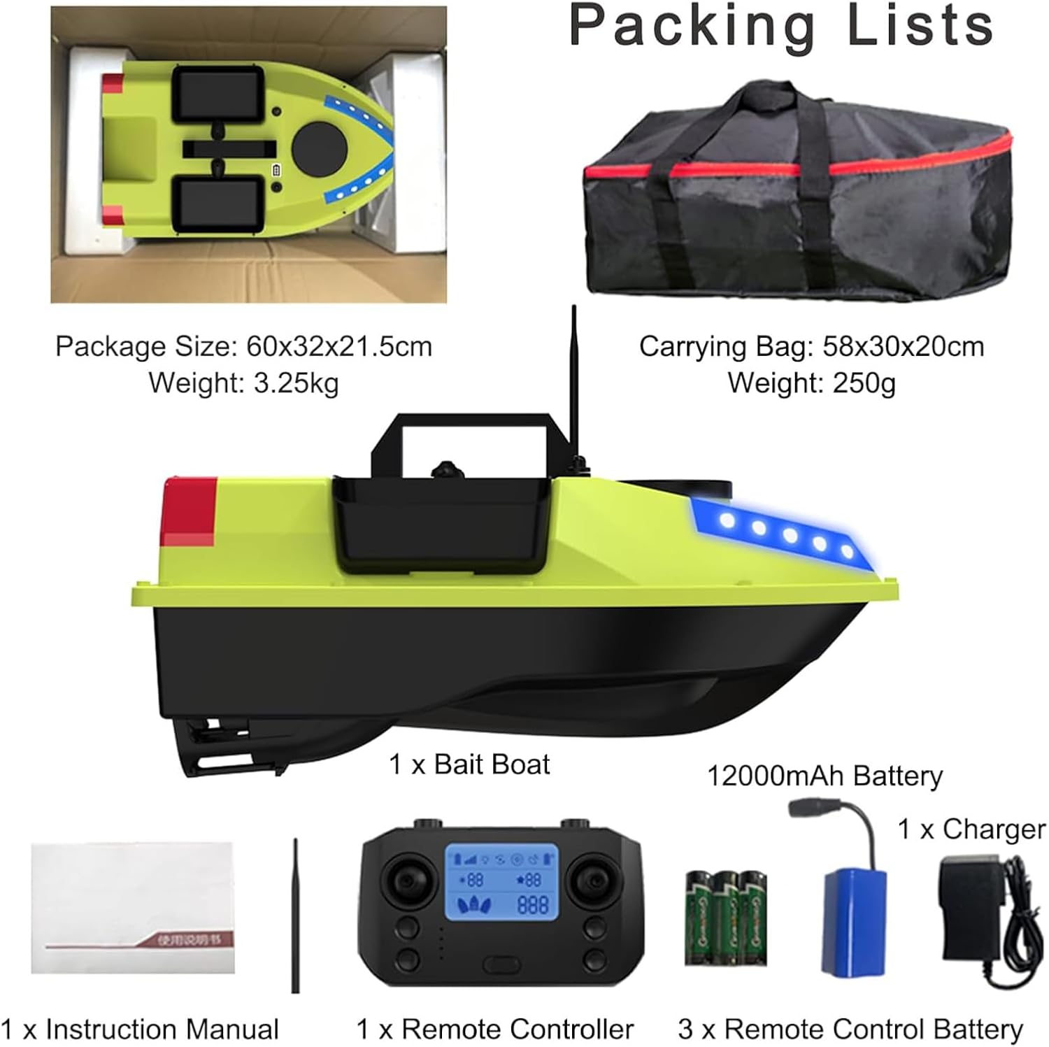 Esca da Pesca con GPS, Doppio Motore, Barca per Mangimi Telecomandata Pesca Facile, Borsa per Il Trasporto e Caricatore Inclusi capacità da 3KG, Telecomando da 2,4G, Batteria da 12000mAh