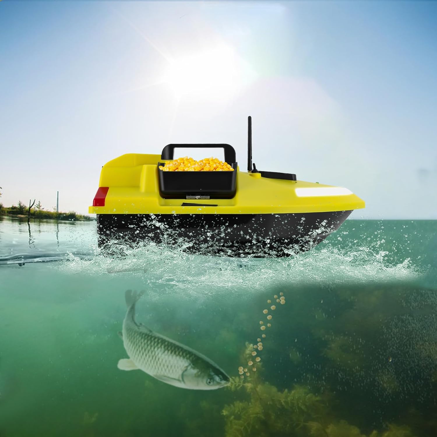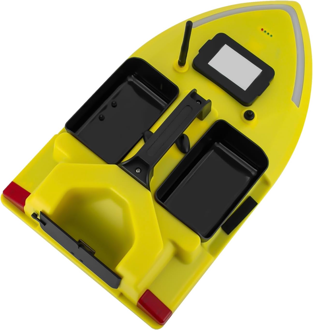 Durevole: questo prodotto è realizzato in materiale ABS di alta qualità, robusto e durevole, forte design a doppio motore, offre una potenza sufficiente per la barca di viaggiare Lunga durata: batteria al litio da 12000 mAh, ricarica rapida, a basso rumore, basso consumo energetico, può navigare continuamente per 4 ore, abbastanza per la pesca all'aperto per 1 giorno Buone prestazioni: con la frequenza di controllo 2.4G, la distanza di controllo remoto può raggiungere 1640,42 piedi. Con il sistema di calibrazione BeiDou automatico e il sistema di posizionamento GPS, è possibile impostare 40 punti di posizione per garantire un posizionamento accurato Correzione automatica del corso: il prodotto ha un sistema di compensazione automatico integrato che può correggere in modo intelligente il percorso per garantire che l'esca mantenga una velocità stabile e guida in linea retta sotto vento, onde e carichi Design compatto: tre scomparti per esche controllabili indipendentemente, con una capacità di carico approssimativa di 4,41 libbre e un vano posteriore per esche con design anti-gancio
