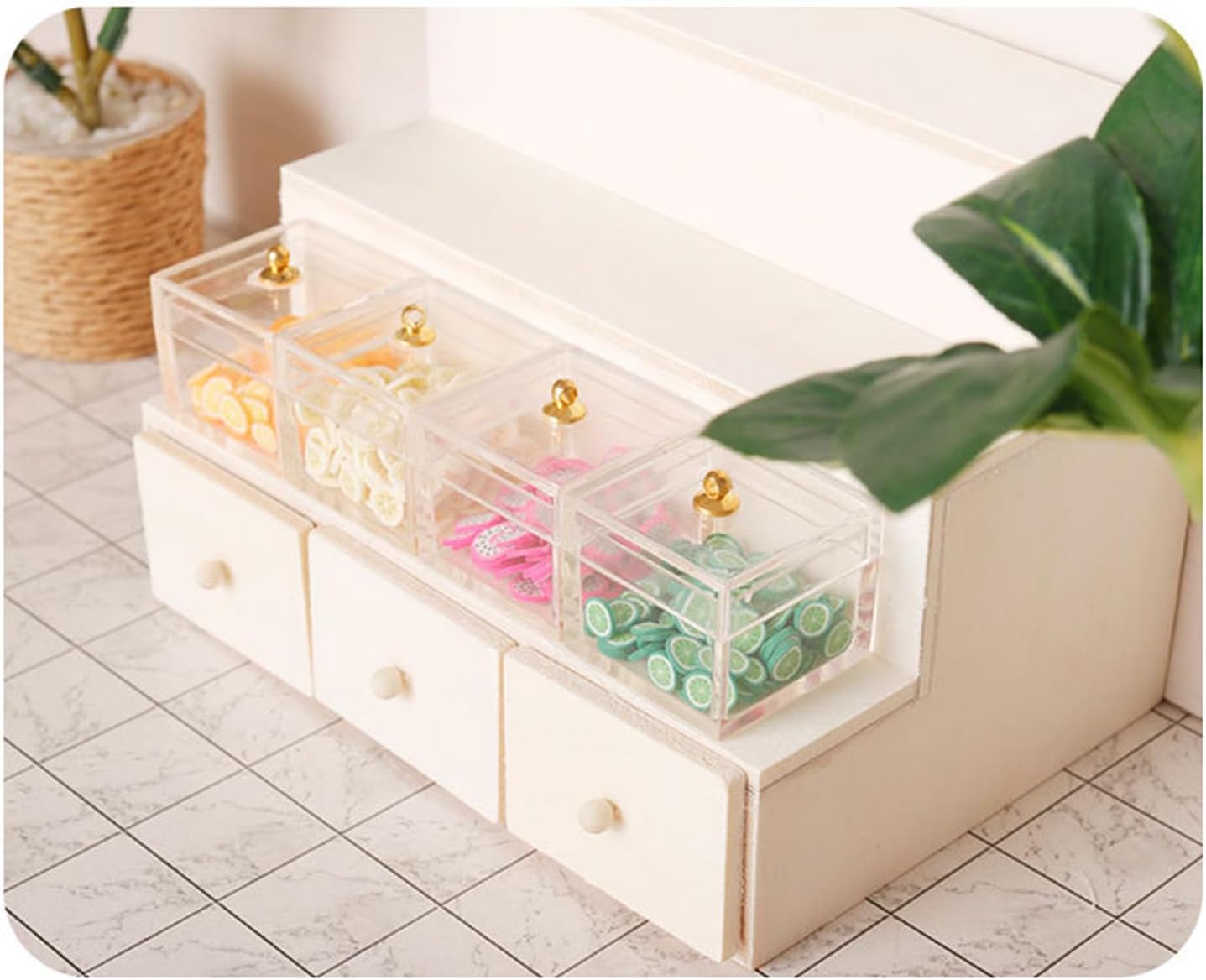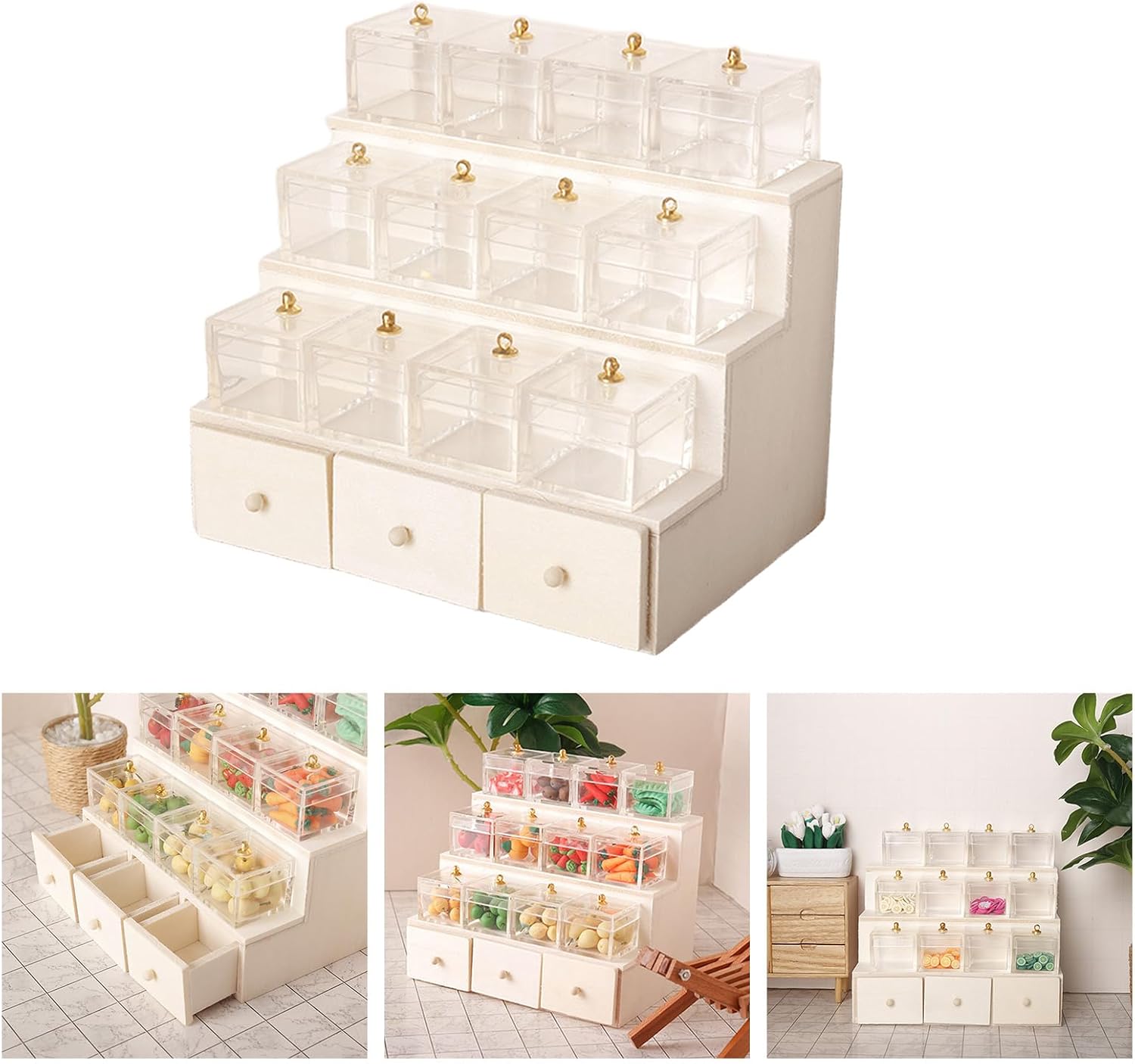 Perfetto per l'uso in mercati in miniatura, mostre di modelli, laboratori artigianali ed esposizioni di decorazioni per la casa e offre versatilità in diversi ambienti. Aumenta la tua collezione di miniature con questo espositore dal design elegante e assicurati di utilizzare legno e acrilico selezionati. Questa vetrina a più livelli consente l'esposizione organizzata di modelli di frutta in miniatura. Ideale per gli appassionati di modelli in miniatura, collezionisti di artigianato e modellisti professionisti che cercano una soluzione espositiva sofisticata. Questo supporto per cassettiera per frutta in scala 1/12 è progettato attentamente per migliorare il fascino visivo delle scene dei modelli in miniatura, rendendolo un ottimo complemento per collezionisti e hobbisti