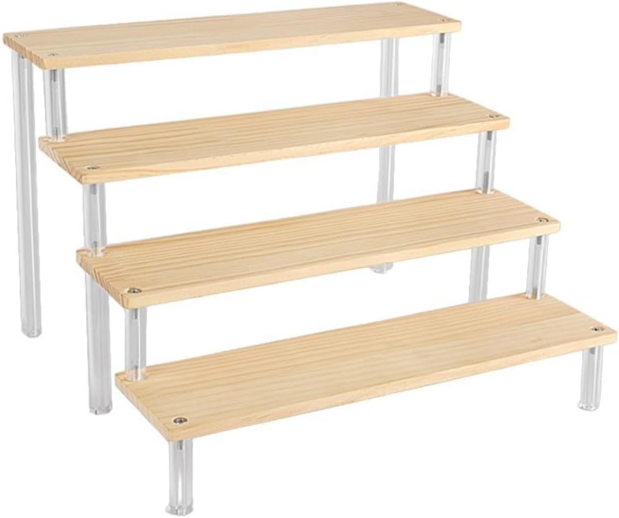 Usi multifunzionali: questo espositore offre da 1 a 5 strati per mostrare vari oggetti come cosmetici o dessert, utilizzando efficacemente lo spazio sul bancone migliorando la visibilità. Materiali robusti: realizzato in legno e acrilico, questo espositore offre una superficie liscia, funzionale e visivamente accattivante in qualsiasi ambiente. Elemento decorativo: la miscela di legno rustico con acrilico moderno dona alla tua casa un tocco accogliente ma elegante che completa vari stili di arredamento. Organizzazione senza ingombri: mantieni i tuoi effetti personali ordinatamente organizzati e facili da trovare con questo organizer a più livelli progettato per soluzioni di archiviazione efficienti. PROCESSO DI MONTAGGIO RAPIDO: monta il supporto senza sforzo collegando i pezzi senza bisogno di strumenti aggiuntivi o istruzioni complesse.