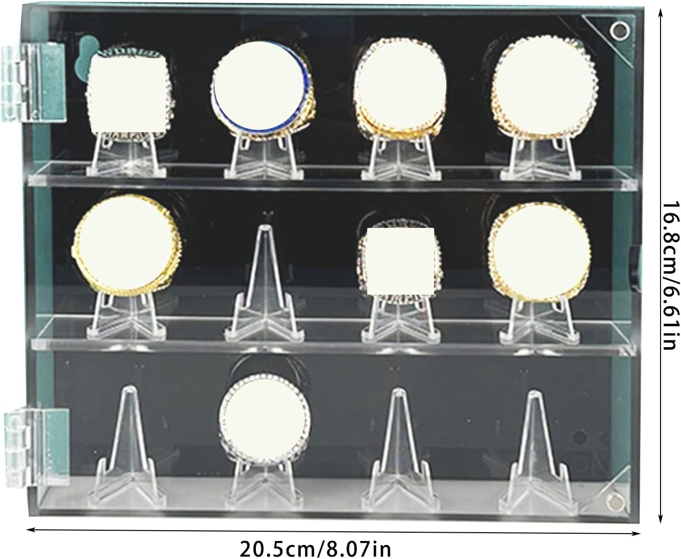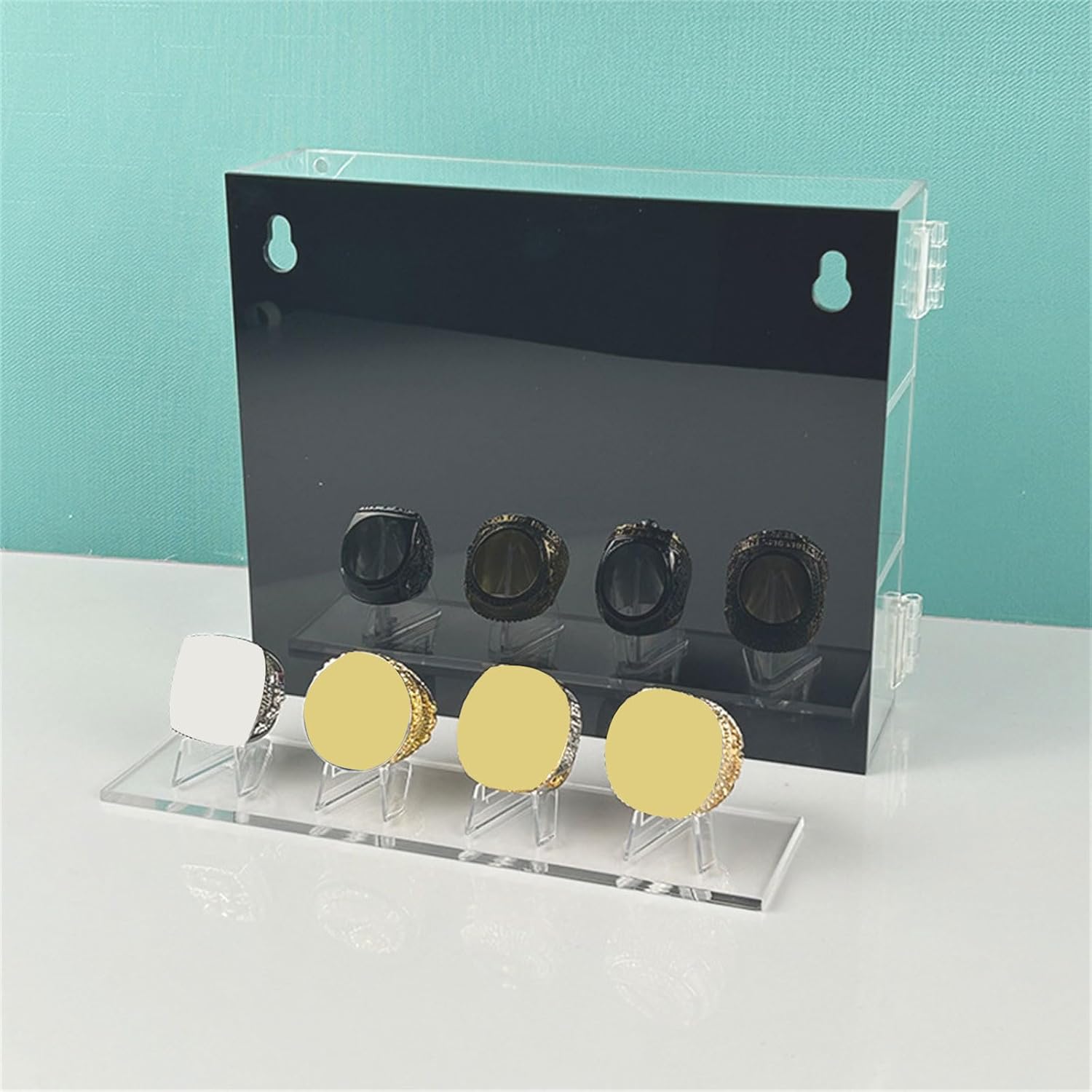 Espositore per anelli in acrilico trasparente per anelli di campionato. Scatola montata a parete per oggetti da collezione sportivi. Installazione semplice