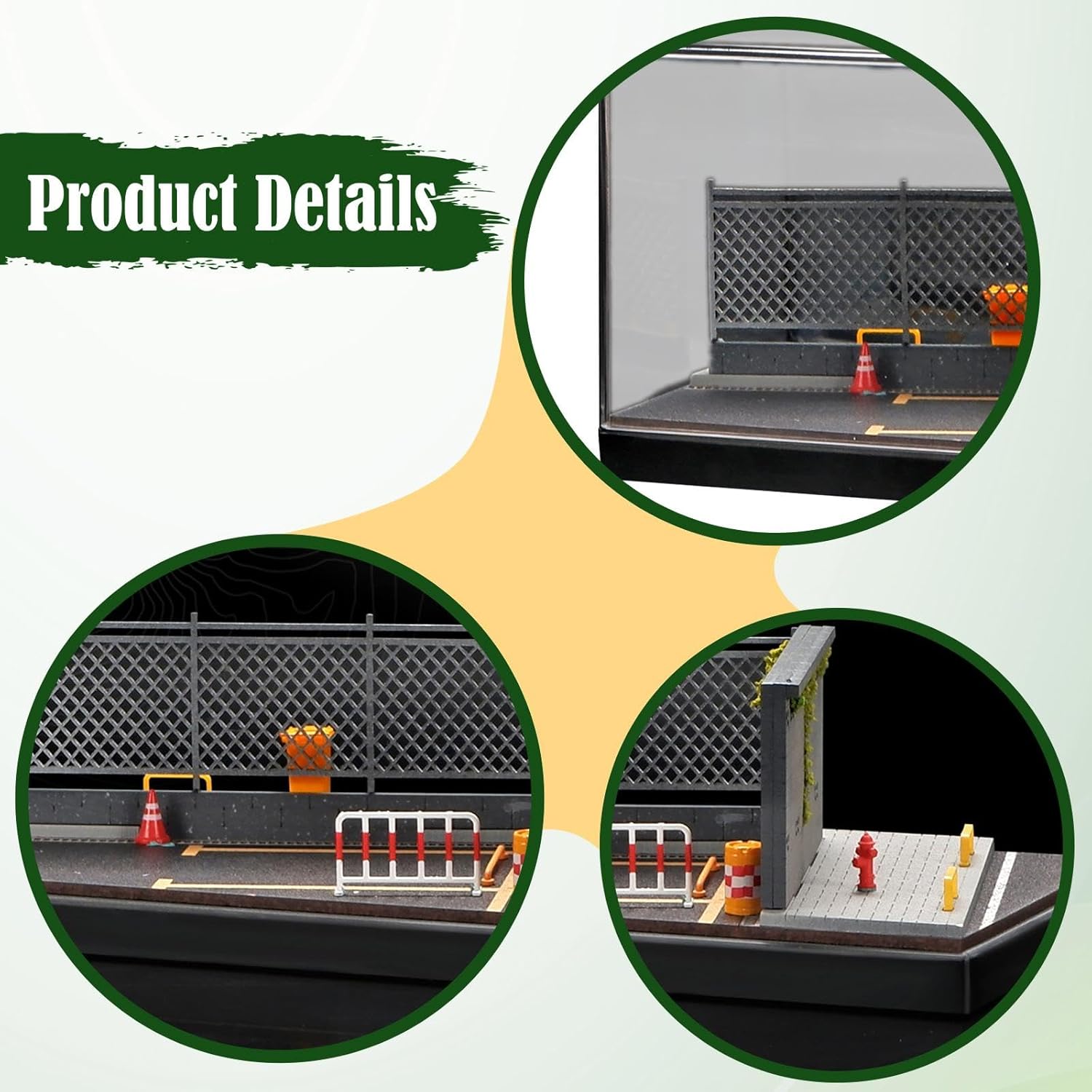 【Compatto e portatile】: le dimensioni della scatola portaoggetti per mini modellini di auto sono 19,7 cm x 10 cm x 10 cm (7,76 pollici x 3,94 pollici x 3,94 pollici), perfettamente adatta per scrivanie, librerie o vetrine 【Mostra la tua collezione】: progettata per modelli di auto pressofuse in scala 1/64, miniature e oggetti da collezione, la vetrina per parcheggio in scala 1/64 presenta un coperchio ad alta trasparenza che mette in risalto i tuoi oggetti preziosi, offrendo al contempo sfondo urbano immersivo 【Fascino versatile】: oltre un'ottima vetrina, la vetrina per diorama in scala 1/64 funge anche da elegante soluzione di archiviazione, un'affascinante decorazione da scrivania e un regalo premuroso per appassionati. È ideale per organizzare, ammirare, commemorare modelli speciali o valorizzare l'arredamento di qualsiasi stanza. 【Ambiente stradale realistico】: il garage per auto pressofuso valorizza la tua esposizione. Questo accessorio trasforma la tua collezione in un diorama dinamico, aggiungendo un tocco realistico che fa davvero risaltare il tuo mondo in miniatura. 【Materiale】: il supporto per espositore per modellini di auto in lega è realizzato in PVC, robusto MDF (pannello di fibra a media densità) e acrilico trasparente, garantendo durata e visibilità ottimale. Il coperchio in acrilico ad alta trasparenza protegge efficacemente i tuoi preziosi modelli da polvere, sporco e danni accidentali.