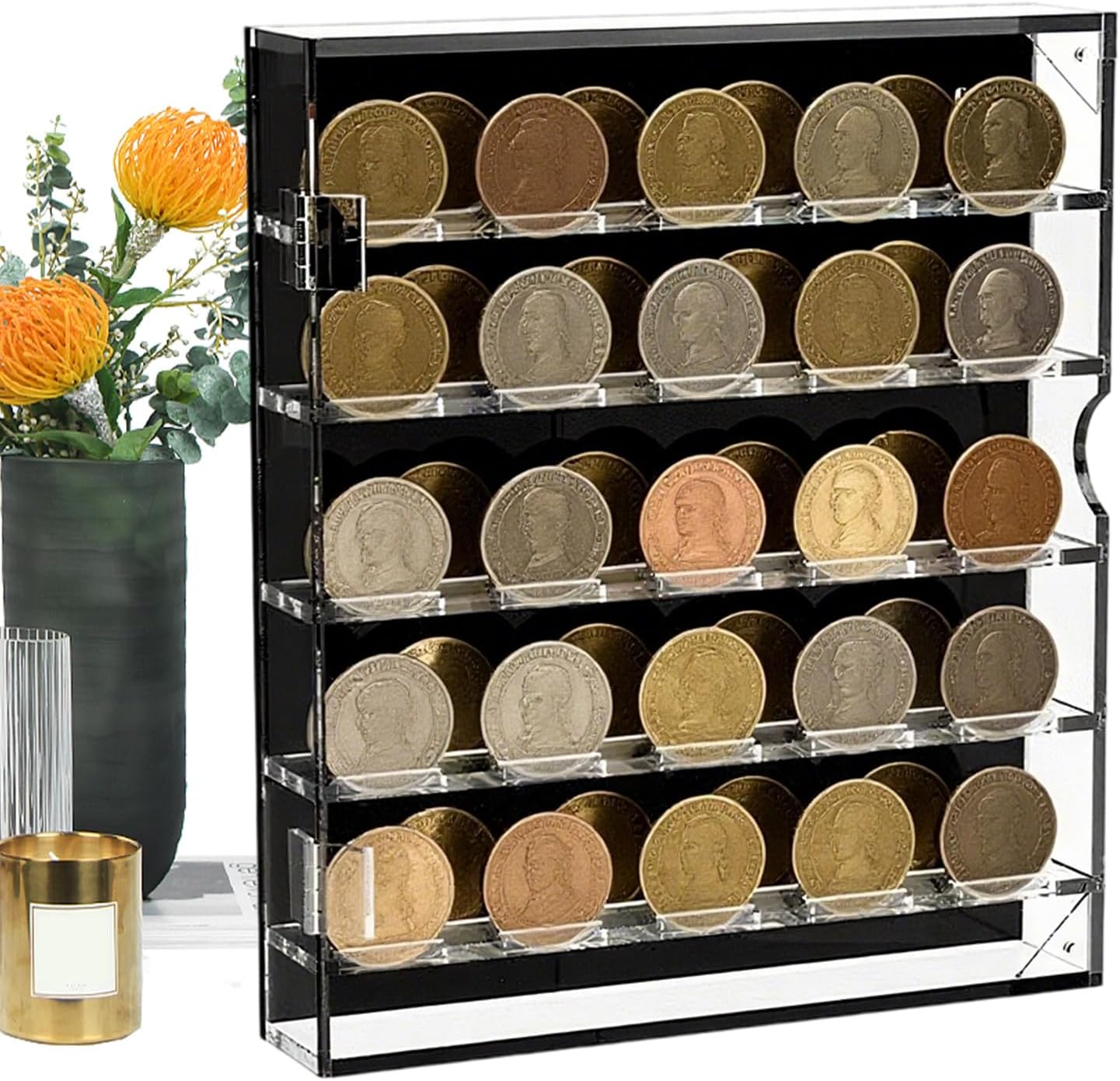 Usi multipli: la vetrina presenta carte rotonde ampiamente utilizzate per esporre badge e medaglie commemorative, offrendo un modo raffinato per organizzare e ammirare la tua collezione Opzioni di posizionamento versatili: progettato con un foro per appenderlo sul retro, questo display può essere appeso al muro o posizionato su un tavolo per un uso flessibile in qualsiasi ambiente, migliorando visibilità e comodità senza sforzo Design salvaspazio: contiene una varietà di monete e carte attraverso uno stoccaggio a strati con divisori regolabili, garantendo un uso efficace dello spazio pur mantenendo una disposizione ordinata e funzionale Sicuro antiscivolo Base: progettata per resistere al ribaltamento grazie alla sua base antiscivolo, fornendo stabilità costante che salvaguarda la tua moneta migliorando al tempo stesso l'impostazione della presentazione Protezione a 360 gradi: salvaguarda badge e monete con un design trasparente per una visibilità completa, garantendo al tempo stesso una funzione protettiva contro polvere e danni