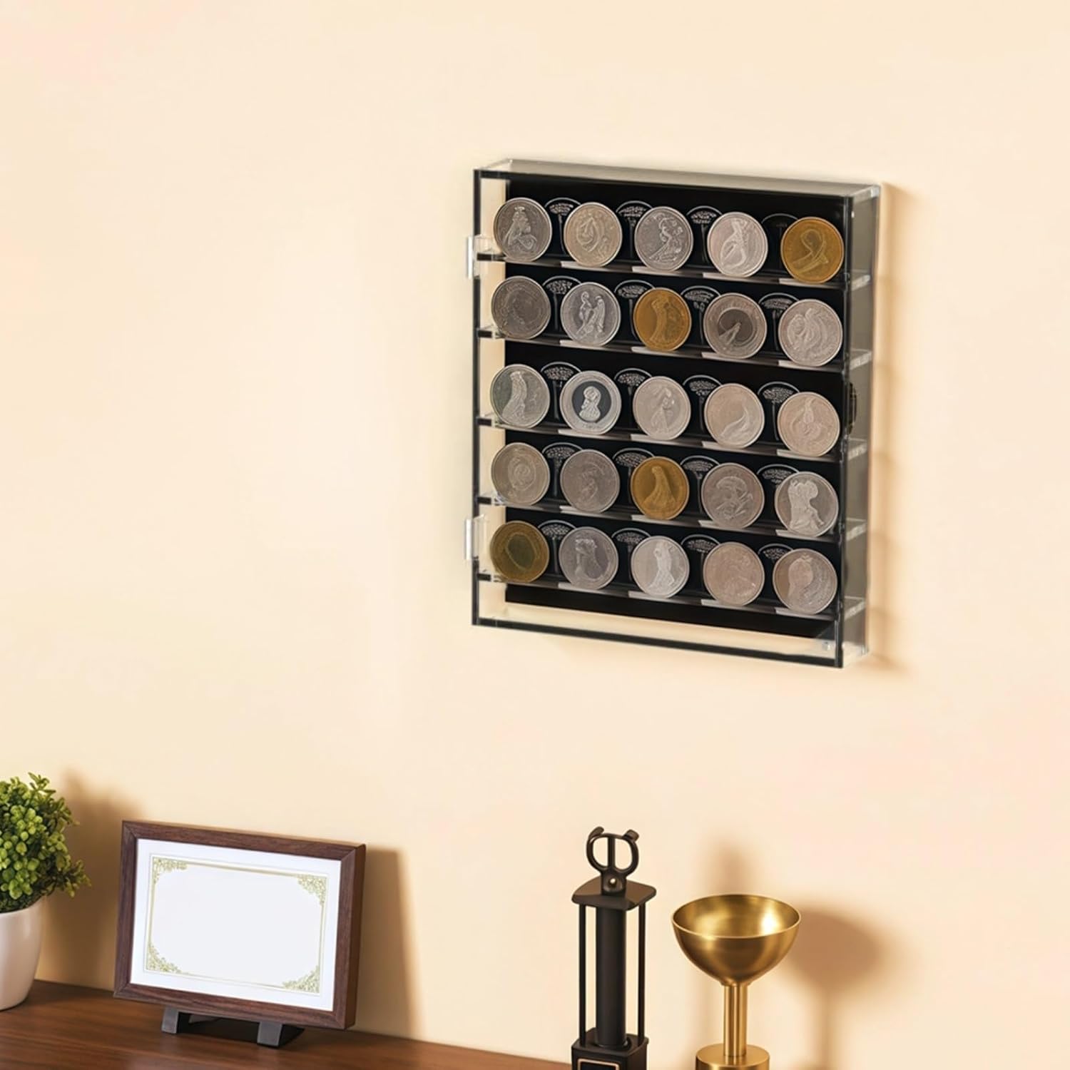 Struttura trasparente: mostra la tua amata chiarezza e fascino; modellata in acrilico trasparente; migliora l'aspetto proteggendo la collezione da sporcizia e difetti Ampi strati: cinque strati offrono una vista; ideale per organizzare e stressare circa quarantacinque; aiuta i collezionisti che cercano uno spettacolo sorprendente Segmenti semplici: fissa la tua posizione senza sudare; le parti hanno punti che fissano saldamente ogni moneta; non dovrai più preoccuparti di scivolare o di essere danneggiato mentre sono a vista; segmenti facili da piegare per l'uso Porta a battente: facile accesso alla tua collezione di monete attraverso la porta girevole; allevia l'azione di aggiungere o tirare; apprezzare la comoda commutazione delle monete senza problemi Struttura robusta: il suo design solido ti consente di metterlo ovunque per adattarsi alla tua casa o ufficio; da armadi e sporgenze a desktop, cerca il luogo giusto per esporre la collezione