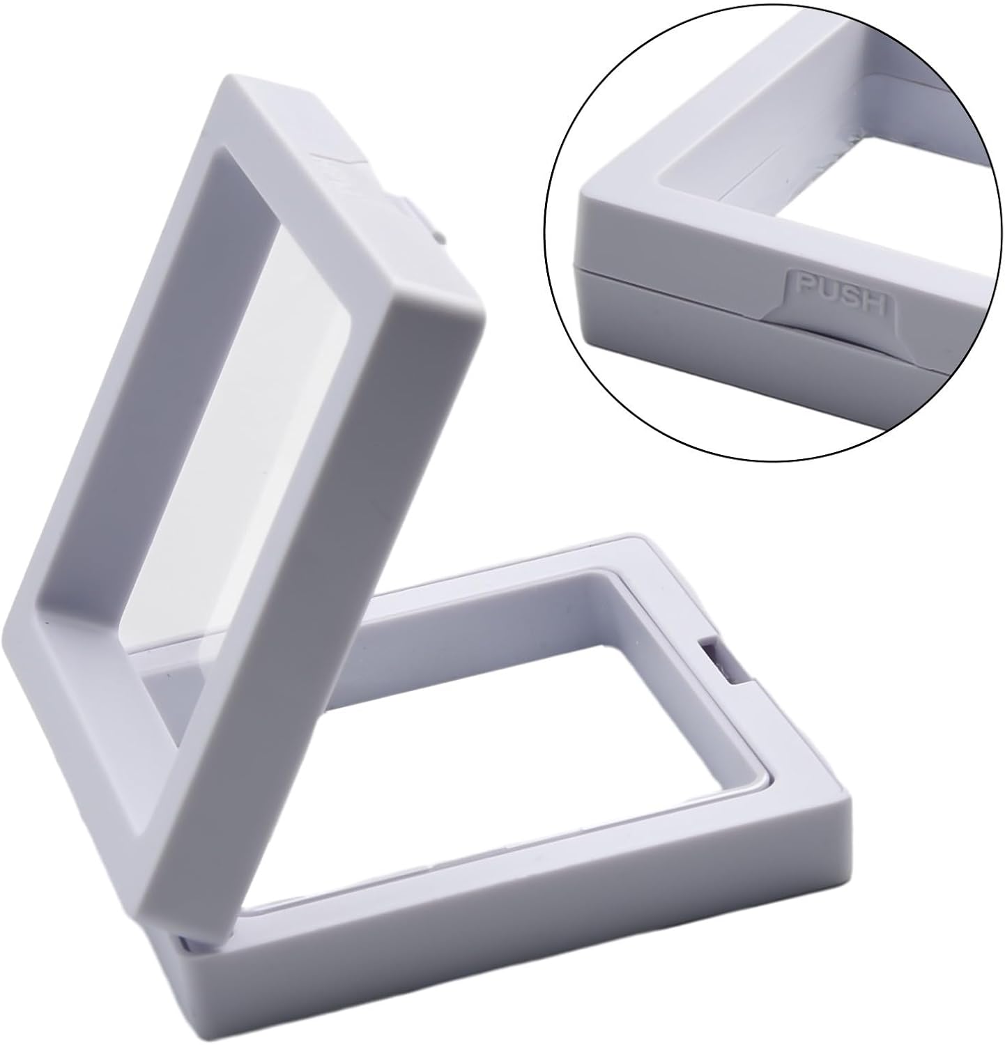 Display 3D: eleva i tuoi oggetti da collezione mostrandoli tra due pellicole di plastica flessibili per un affascinante effetto galleggiante. [Opzioni di colore] Scegli tra una gamma di colori tra cui nero, bianco, grigio, arancione, rosso rosa e giallo chiaro per completare il tuo stile personale. Facile da montare: progettato per semplicità; basta inserire i tuoi oggetti e sigillare per una presentazione accattivante. Dimensioni: i supporti da 70 x 70 mm sono adatti per altri cimeli come francobolli e gioielli. Confezione sfusa: include 10 supporti per confezione in modo da poter visualizzare in modo creativo più oggetti contemporaneamente.