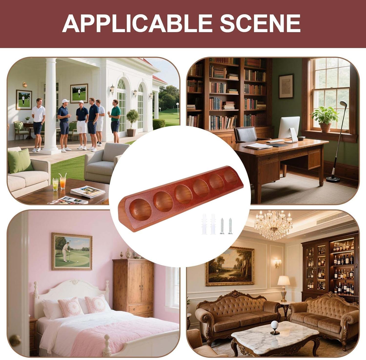 Materiale in legno resistente: la vetrina per palline da golf è realizzata in legno naturale, offrendo un'estetica liscia e lucida che aggiunge calore ed eleganza a qualsiasi ambiente, mescolandosi armoniosamente in decorazioni moderne o classiche per una presentazione raffinata Facile da installare: con la configurazione intuitiva del supporto per palline da golf, comprese viti e tappi, gli utenti possono montarlo rapidamente su pareti o scaffali senza attrezzi, garantendo un ambiente privo di ingombri per riporre palline da golf in palestre o spazi personali Disposizione efficiente delle palline: progettato con slot delle dimensioni esatte della palla, il supporto per palline da golf ospita comodamente sei palline da golf, mantenendole ordinate e accessibili ai collezionisti che cercano un modo elegante per esporre i loro oggetti preferiti durante riunioni o eventi Salvaspazio: questa custodia per palline da golf offre un layout salvaspazio con il suo profilo elegante, assicurando nessun disordine sul pavimento o sullo scaffale, consentendo di montare senza sforzo su pareti o tavoli per una configurazione organizzata e visivamente accattivante Ampia applicabilità: con compatibilità per scaffali o scrivanie, questo supporto da parete per palline da golf mostra i ricordi del golf in modo attraente, aggiungendo fascino agli interni della casa offrendo agli appassionati di golf una fonte di orgoglio e divertimento nel loro ambiente quotidiano