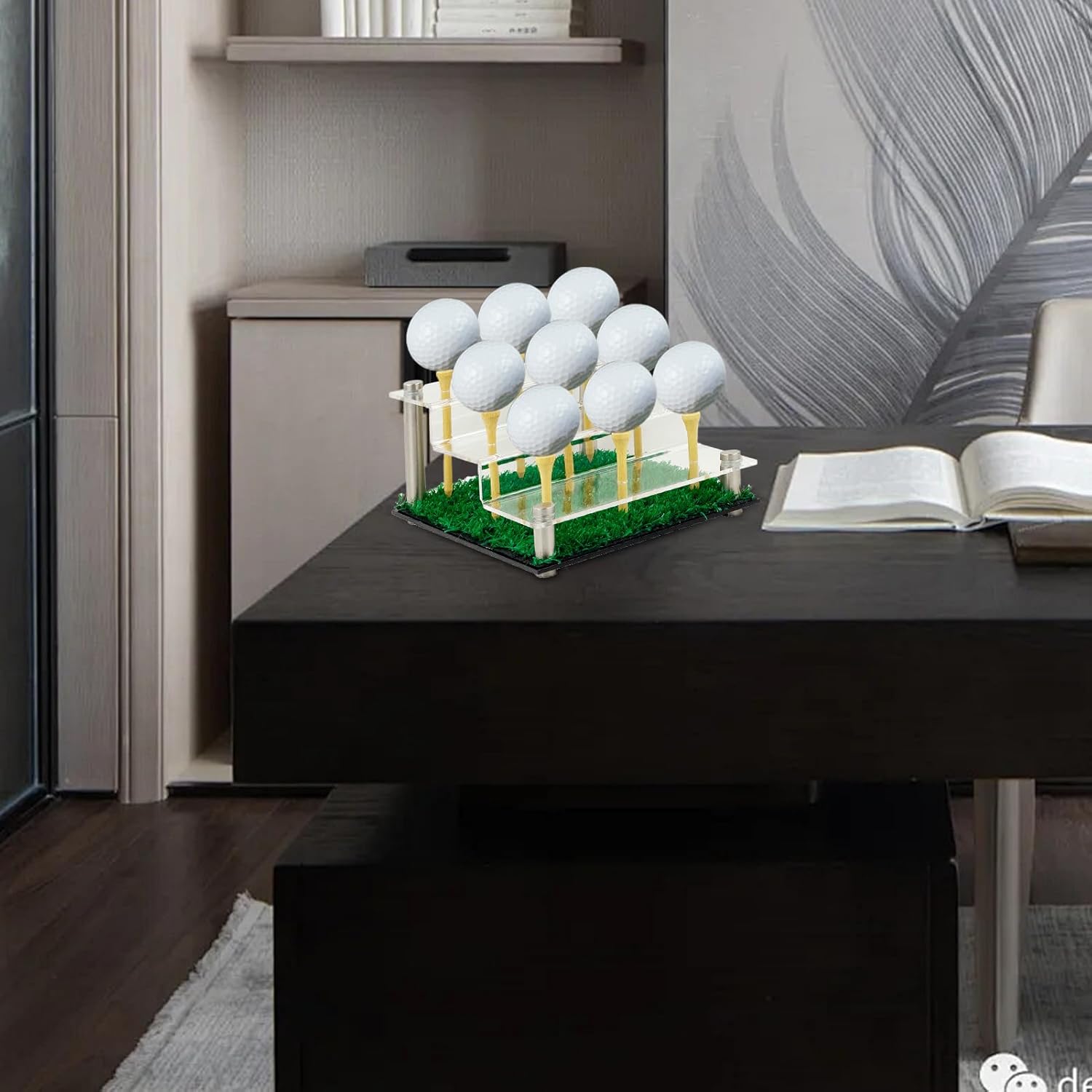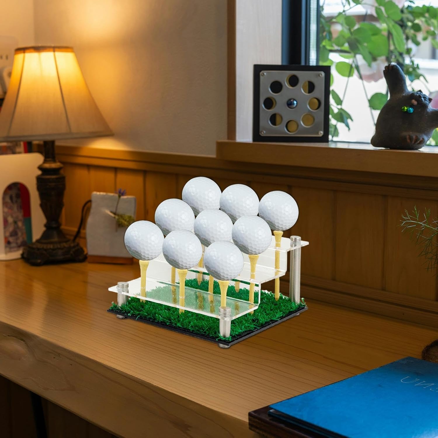 Sistema di supporto sicuro per palline: progettato con precisione, l'organizer a più livelli fornisce un meccanismo di supporto sicuro che supporta il display sfalsato e consente una visione multi-angolo per sollevare la presentazione degli accessori da golf Vetrina per palline da golf: combinando un design a tema golf con una base realistica in erba, questo espositore trasparente completa l'arredamento verde mentre mostra le tue palline da golf in modo attraente Eccellente soluzione per riporre il golf: realizzato in robusto acrilico, fornisce una vetrina cristallina per evidenziare le palline da golf garantendo una chiarezza duratura e una protezione contro lo scolorimento Multiuso: un raffinato accessorio per il soggiorno e un display versatile, porta funzionalità alla tua casa mostrando le tue palline da golf come un pezzo straordinario in qualsiasi studio o zona giorno Elegante portaoggetti da golf: combina funzionalità e stile, questo organizer per palline da golf offre una soluzione salvaspazio per le esigenze di esposizione dei collezionisti, accogliendo 9 palline in una disposizione ordinata
