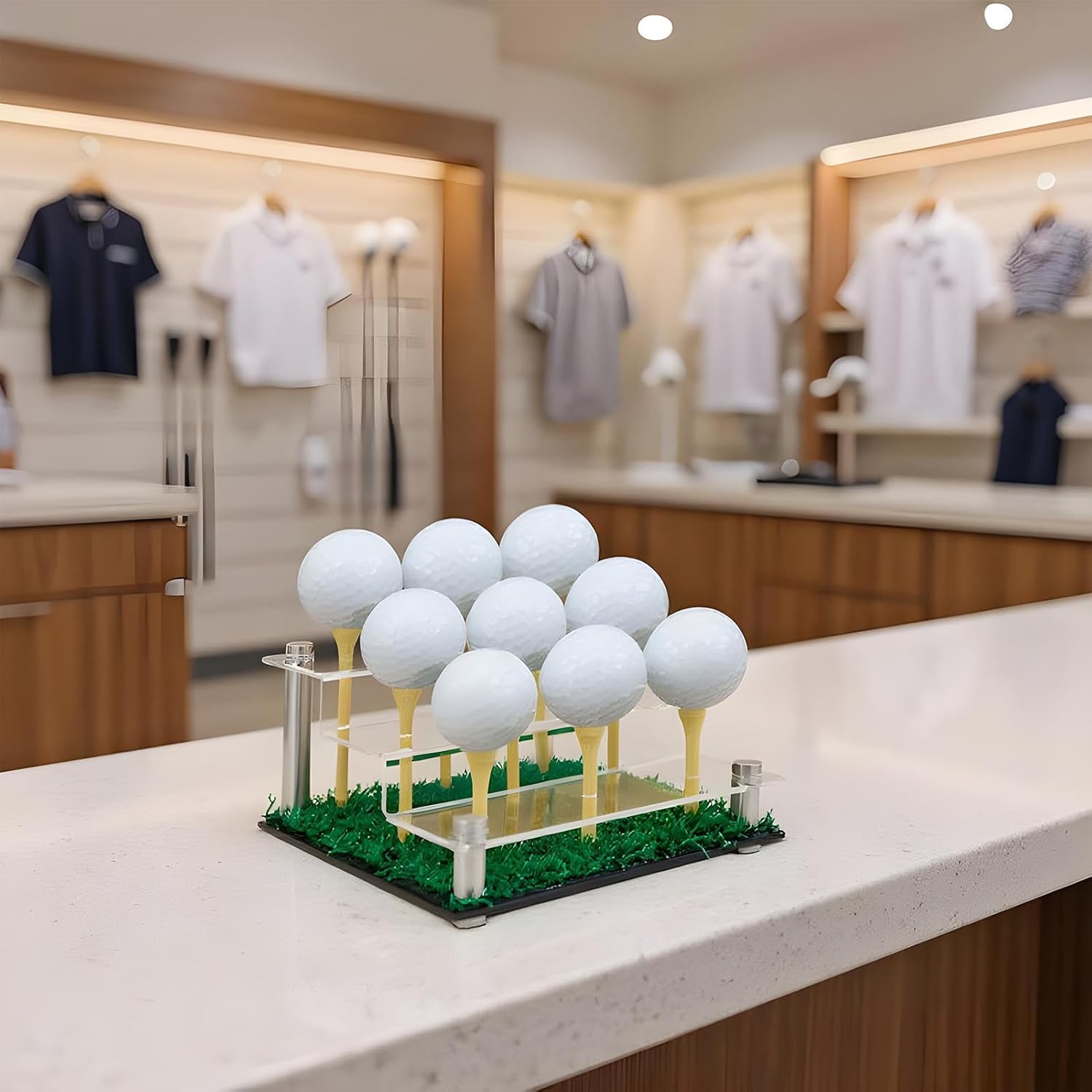 Caratteristiche del display sfalsato: l'innovativo design dell'organizzatore a più livelli incorpora un supporto sicuro per la palla e un display sfalsato, consentendo una visione multi-angolo mantenendo una sofisticata soluzione di archiviazione per accessori da golf Decorazione perfetta per il golf: dotato di un display a tema golf con una base in erba realistica e una cornice trasparente, serve come decorazione verde e mette in risalto la tua collezione di golf in modo efficace Eccellenza dell'esposizione della pallina da golf: progettata con acrilico di alta qualità, garantisce una presentazione cristallina salvaguardando le palline da golf in un display che resiste all'ingiallimento nel tempo Ampiamente applicato: questo versatile display funge sia da elemento funzionale per la decorazione della casa che come punto culminante della collezione di studio, fondendo perfettamente l'arredamento a tema golf nel tuo spazio di vita quotidiano Elegante portaoggetti da golf: combina funzionalità e stile, questo organizer per palline da golf offre una soluzione salvaspazio per le esigenze di esposizione dei collezionisti, accogliendo 9 palline in una disposizione ordinata