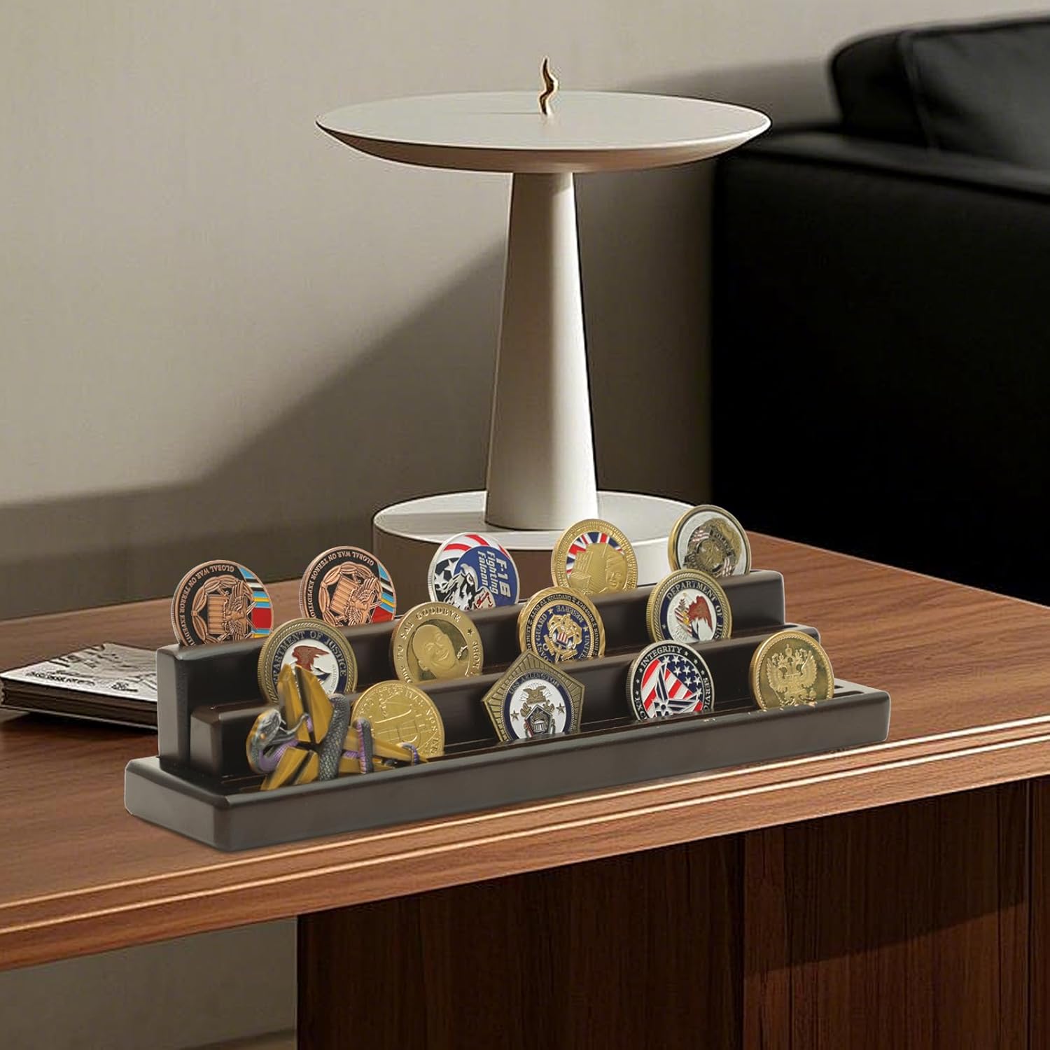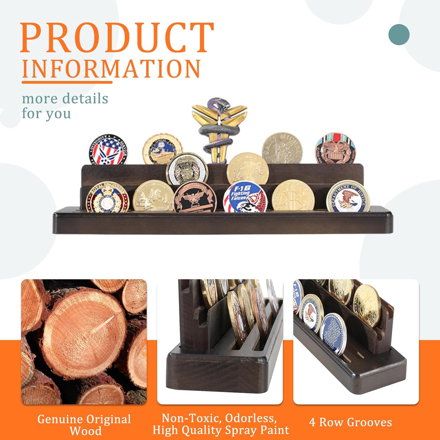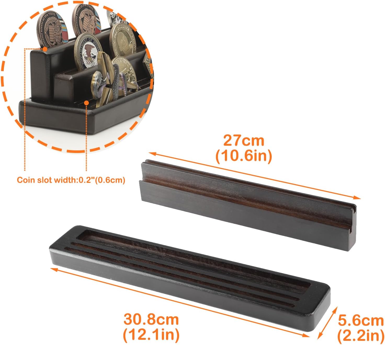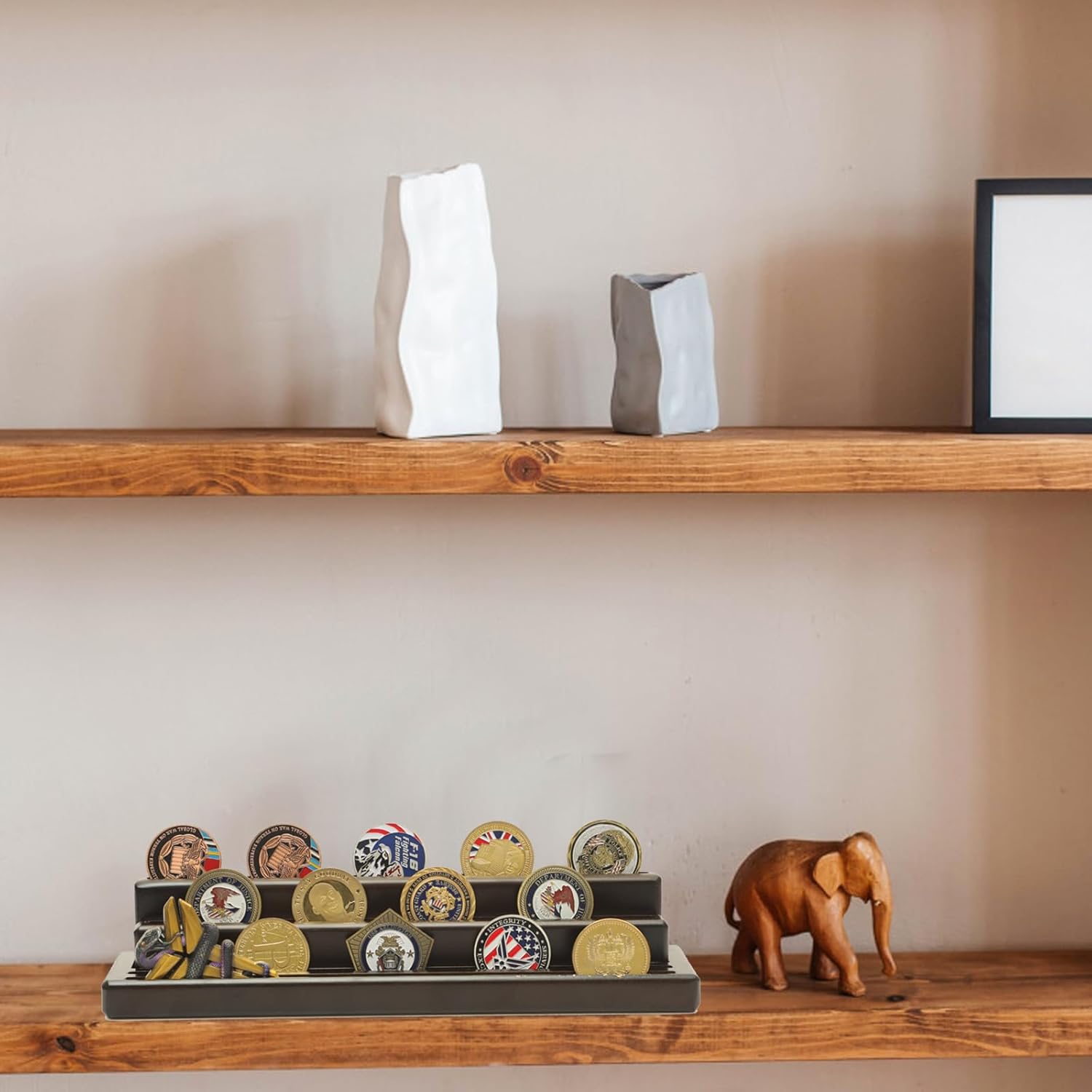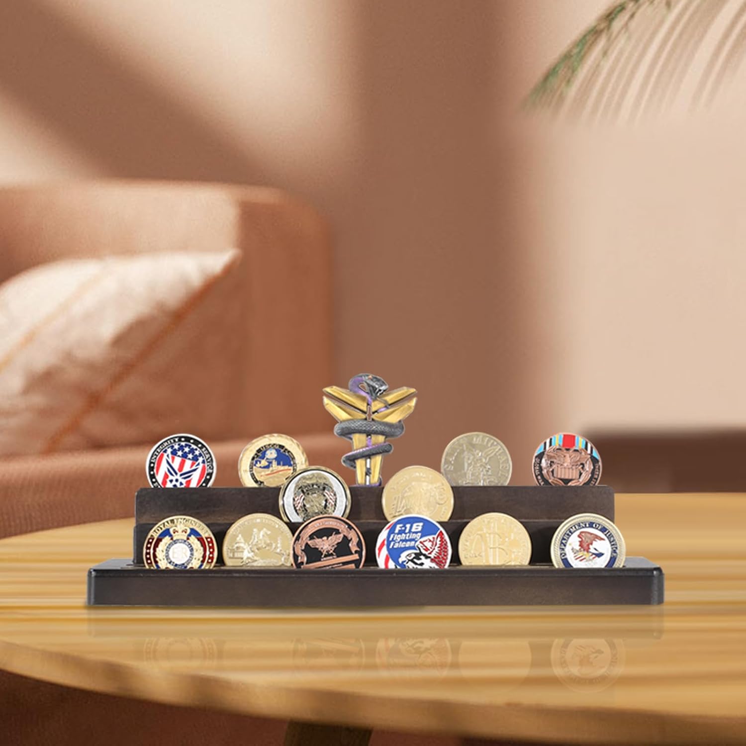Presentazione professionale ed elegante Con le sue 4 file inclinate, questo supporto mette in risalto ogni moneta o medaglia da tutte le angolazioni! Perfetto per esporre le monete della sfida militare, le medaglie dello sci o le collezioni commemorative come in un museo. Legno massello ultra resistente Realizzato in legno di faggio trattato, questo display non si deforma ed è resistente ai graffi. Niente più fragili supporti in plastica: qui è la qualità che dura! Adatto a tutte le tue collezioni Sia che collezioni monete militari, medaglie sportive, fiches del casinò o monete rare, le scanalature regolabili si adattano a diametri da 4,4 a 5,1 cm (1,75" a 2"). Compatto e pronto all'uso Con soli 0,33 kg e un design minimalista, si installa in 2 secondi su una scrivania, uno scaffale o in una vetrina. Nessun assemblaggio richiesto: solo orgoglio da mostrare! Regalo emozionale Offri un'ambientazione degna di eroi (militari, vigili del fuoco) o appassionati di numismatica. Un oggetto che dice “grazie” con classe e custodisce la storia.