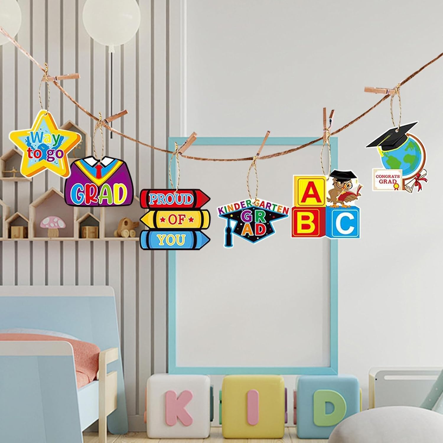 Qualità squisita: con bordi arrotondati e uno strato protettivo opaco per una manipolazione sicura e una lunga durata, completato da stampa ad alta risoluzione e arte dettagliata che garantisce una chiarezza eccellente. Montaggio semplice: etichette di laurea per bambini con installazione intuitiva e corda di iuta naturale che consentono di appenderle rapidamente a pareti o supporti, integrando perfettamente l'arredamento dell'evento senza strumenti aggiuntivi Materiale robusto: realizzate con componenti innocui, queste etichette garantiscono sicurezza grazie alla loro consistenza morbida, ai toni resistenti all'usura, alla struttura rinforzata a doppio strato e ai bordi finemente rifiniti per una maneggevolezza confortevole e senza preoccupazioni Organizzazione ottimizzata: modulare a 9 componenti che offre un appeal visivo a strati insieme a una distribuzione spaziale intelligente, consentendo molteplici configurazioni combinabili per mostre versatili nelle cerimonie scolastiche. Etichette festive: aggiungi un tocco caldo e divertente alla cerimonia di laurea del tuo bambino con queste etichette creative, tra cui motivi di laurea e messaggi allegri per l'occasione