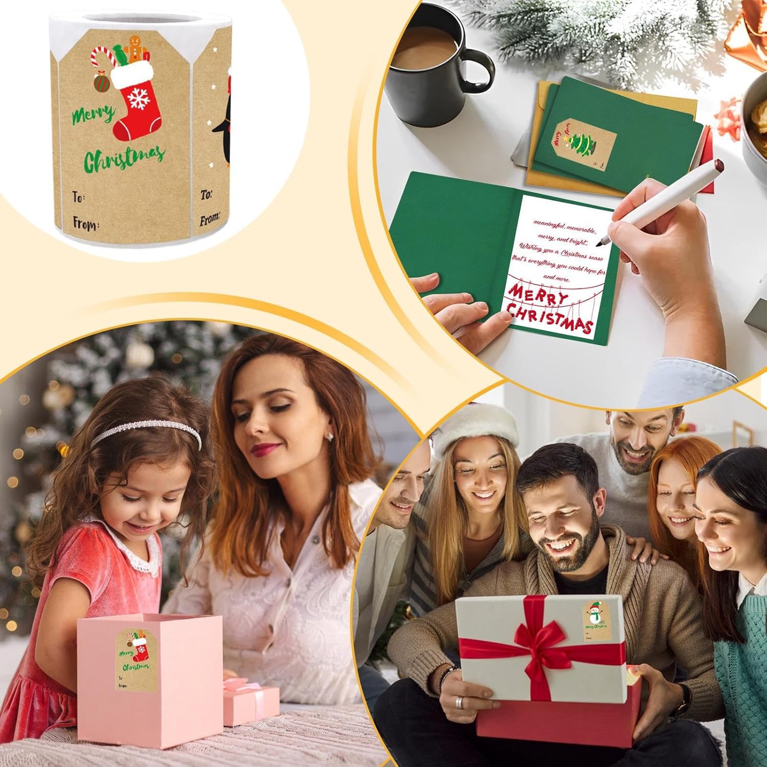 Facile da usare: progettate con un'adesione adesiva affidabile, queste etichette natalizie assicurano un fissaggio senza sforzo sulle confezioni regalo, esaltando l'aspetto del presente ed essendo appositamente adatte per articoli fatti a mano creativi condivisi durante le celebrazioni natalizie. La loro applicazione intuitiva consente una decorazione rapida ed estetica per abbellire i tuoi regali durante le festività natalizie, senza richiedere strumenti aggiuntivi, fornendo una soluzione pratica Decorazioni versatili per le vacanze: queste etichette adesive natalizie presentano sei motivi a tema festivo che aggiungono un tocco ai tuoi regali. Le fanno risaltare sotto l'albero o alle feste, diffondendo la festa e migliorando le esperienze di regalo durante il periodo natalizio. La loro versatilità li rende perfetti per una varietà di usi decorativi, contribuendo a un'atmosfera calda e amichevole durante le celebrazioni invernali Uso esteso e sicuro: queste etichette natalizie aderiscono in modo sicuro a molti materiali, offrendo ampie applicazioni per confezioni regalo e decorazioni. Garantiscono che i tuoi presenti si distinguano per un fascino durante le festività stagionali, grazie all'adesione ottimale su varie superfici. Il loro uso versatile garantisce una tenuta perfetta per progetti festivi, rafforzando la visuale delle tue creazioni. Affascinante tocco festivo: le etichette natalizie in carta scrittabile con motivi festivi offrono uno speciale fascino rustico, consentendo messaggi a mano premurosi che aumentano il valore emotivo dei regali. Perfetti per cornici intime come feste in casa o riunioni con gli amici, aggiungono una finitura personalizzata e sentimentale ai tuoi presenti. Pratica funzione pelabile: progettata per comodità, queste etichette per il nome di Natale combinano facilità di peeling con superfici anti-sbavature, compatibilità con molteplici strumenti di scrittura per modernizzare le attività di etichettatura durante le festività, con un design che consente un utilizzo rapido e senza sforzo per identificare gli articoli durante gli eventi festivi.