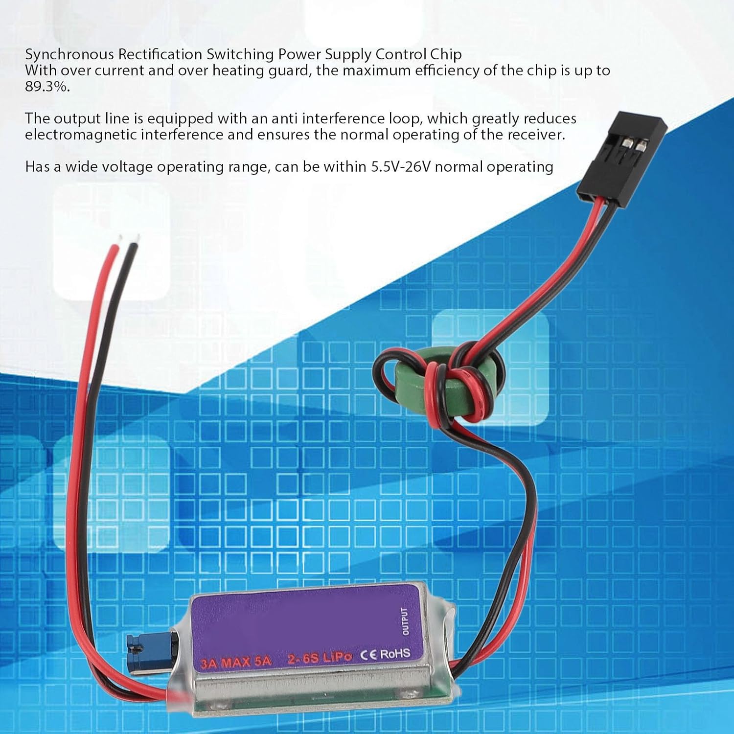 [Funzionamento sicuro] La protezione eccessiva e surriscaldamento integrata per la sicurezza del dispositivo. [Design compatto] Piccole dimensioni e leggero, perfetti per spazi ristretti. [Ampio intervallo di tensione] Ingresso di potenza versatile 5,5 V a 26 V con protezione di polarità inversa. [Prestazioni stabili] L'anello anti-interferenza garantisce la stabilità dell'elettronica connessa. [Alta efficienza] Output 3A continuo con picco 5A per prestazioni ottimali del dispositivo.