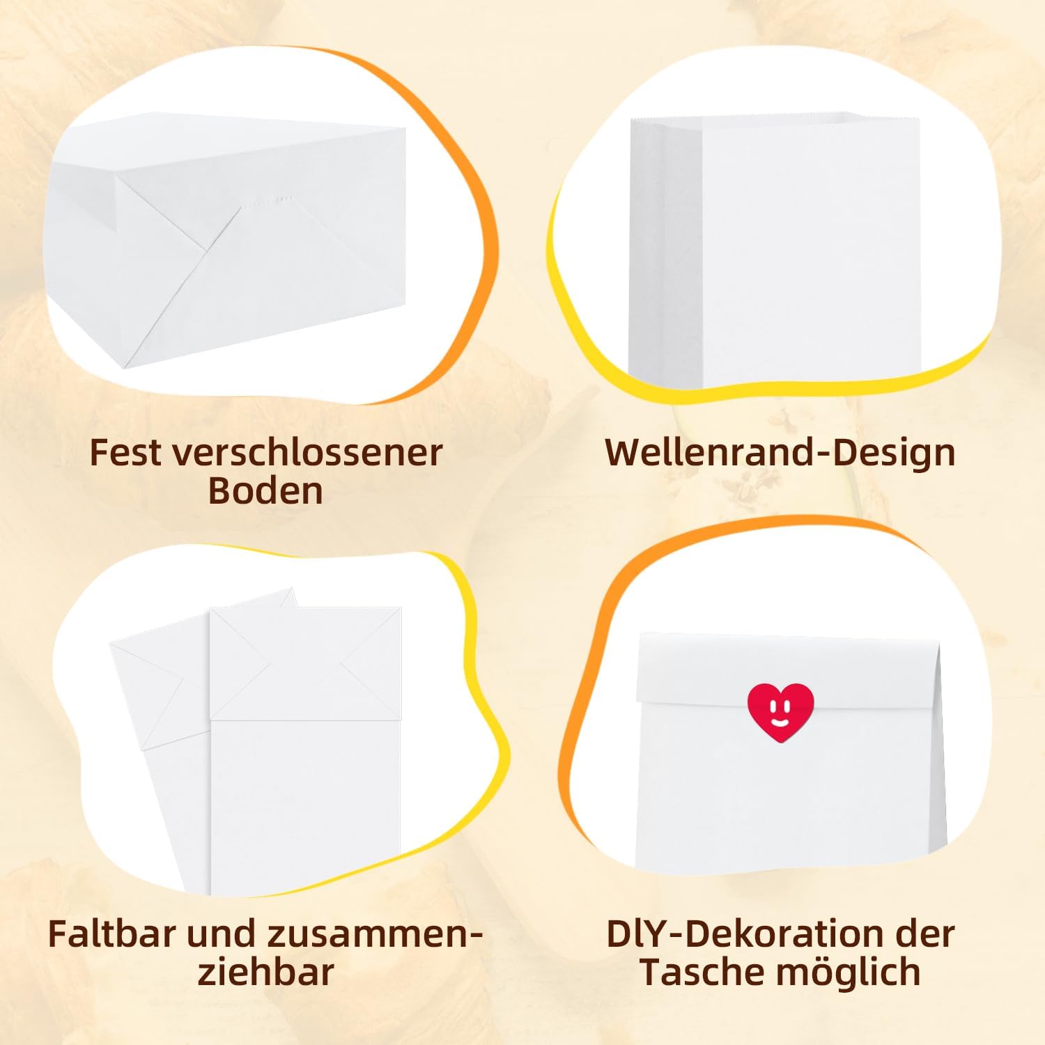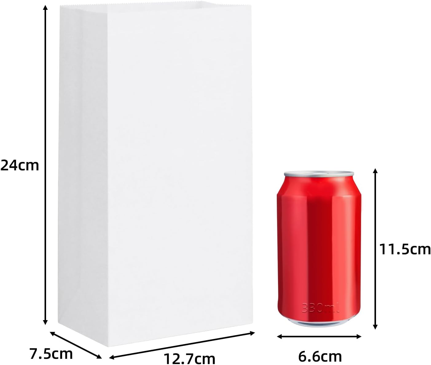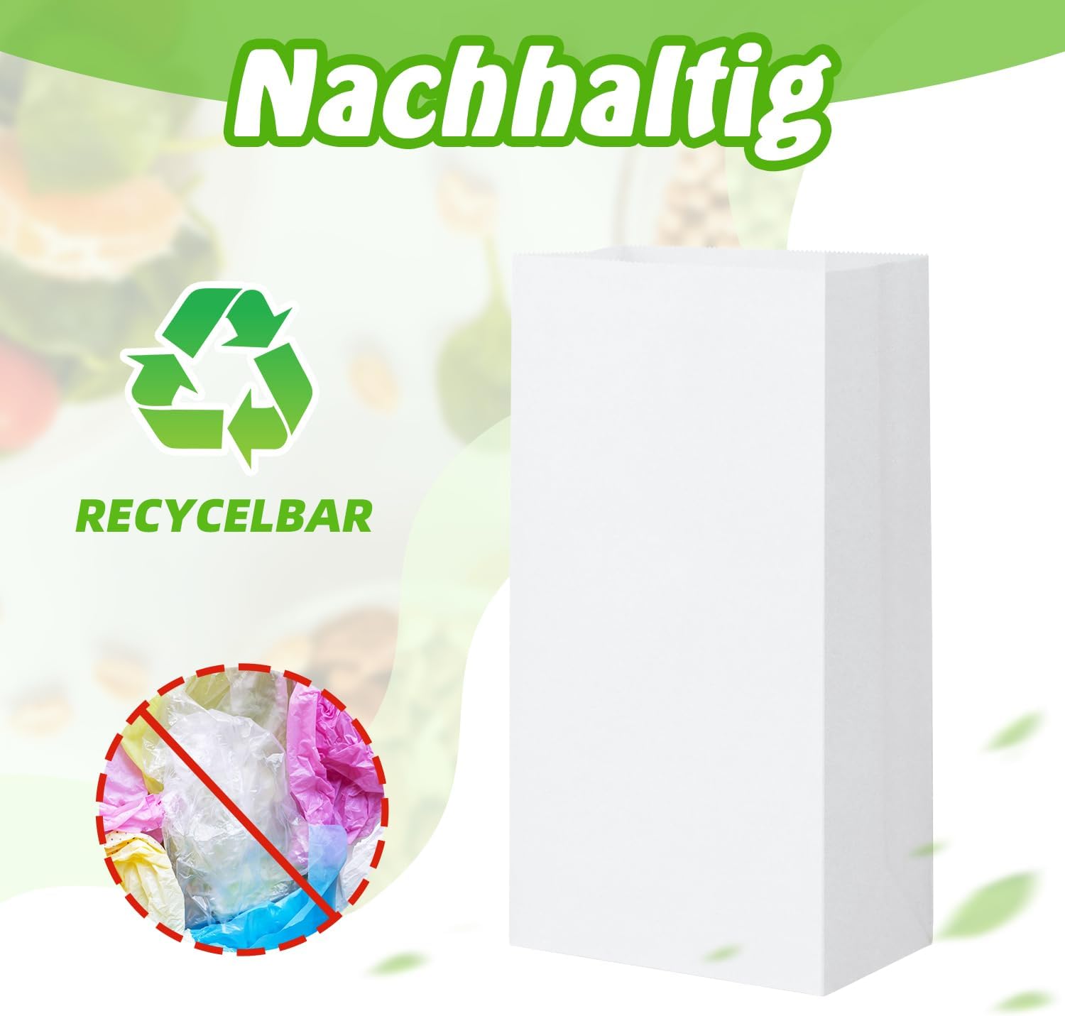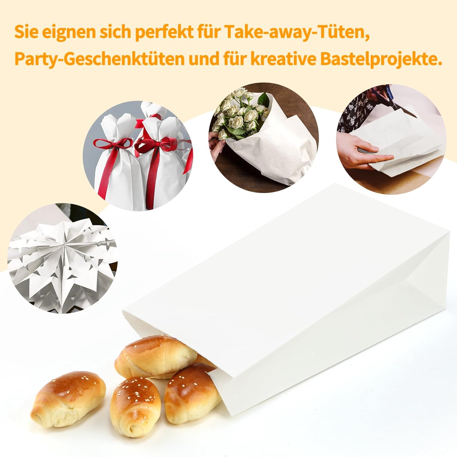 Piccoli sacchetti per il pranzo da 12,7 x 7,5 x 24 cm: questi sacchetti per il pranzo in carta sono ideali come sacchetti regalo per feste, sacchetti per dolcetti o sacchetti per caramelle per snack, popcorn, biscotti e altri dolcetti. I pratici sacchetti per snack marroni sono versatili e rappresentano una soluzione di confezionamento perfetta per piccole prelibatezze. La base quadrata consente a queste borse per il pranzo e lo spuntino di stare stabilmente e di essere facilmente imballate. Questi sacchetti per il pranzo in carta non sono adatti solo per il trasporto di alimenti secchi, ma sono anche versatili come sacchetti regalo, progetti di bricolage e conservazione degli alimenti. Superficie piatta e bianca: i sacchetti per il pranzo in carta kraft EUPAKO non sono trattati e privi di decorazioni stampate, ma offrono la massima libertà di progettazione. Dai alle borse il tuo tocco personale con disegni individuali, disegni a colori o tecniche creative, sia per scopi privati che per occasioni di lavoro. Ideale come mezzo pubblicitario: attacca il tuo biglietto da visita o stampa il tuo logo direttamente sulla superficie liscia delle borse. Sacchetti per il pranzo in carta per uso alimentare, usa e getta e riciclabili, senza odori sgradevoli. Ideale per confezionare pranzi, prodotti da forno e altri alimenti. Pratico per lo stoccaggio e l'organizzazione: contrassegna i sacchetti con etichette numerate per ordinare chiaramente i contenuti e garantire una facile raccolta. Usi versatili: questi sacchetti di carta non sono solo ideali per trasportare le consegne di generi alimentari, pane fresco, panini, snack per il pranzo e piccoli snack, ma sono perfetti anche per progetti creativi fai-da-te. Usateli per realizzare decorazioni festive, come coperture luminose decorative, per romantiche borse di San Valentino o anche come pratiche borse per la mangiatoia per i vostri animali domestici.