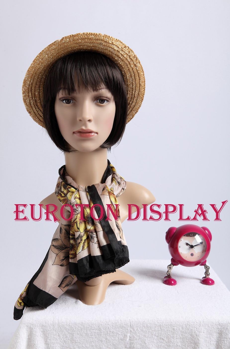 Occhi castani e pelle chiara Viso gradevole con "vere" ciglia e make-up senza imperfezioni La testa può essere ruotata a 360° In plastica amica dell'ambiente