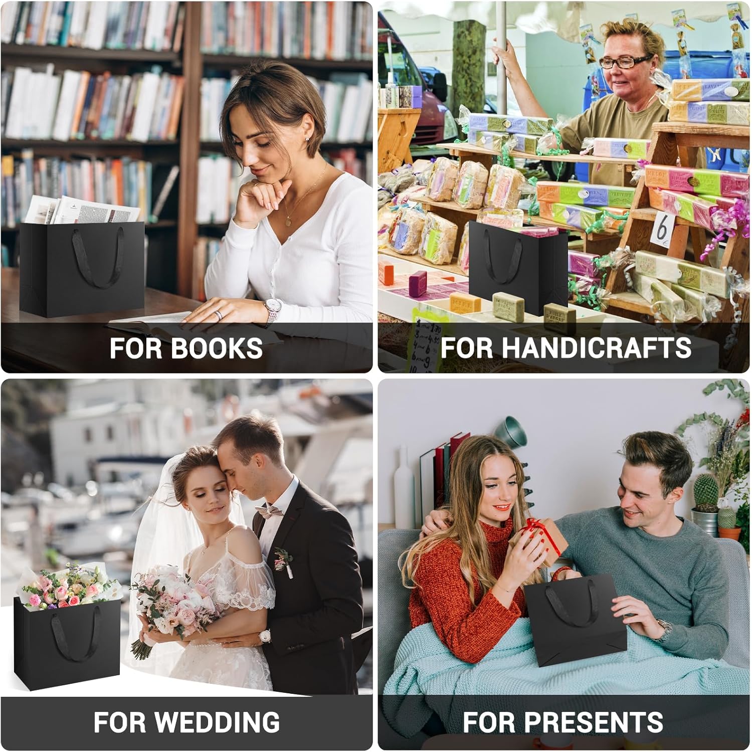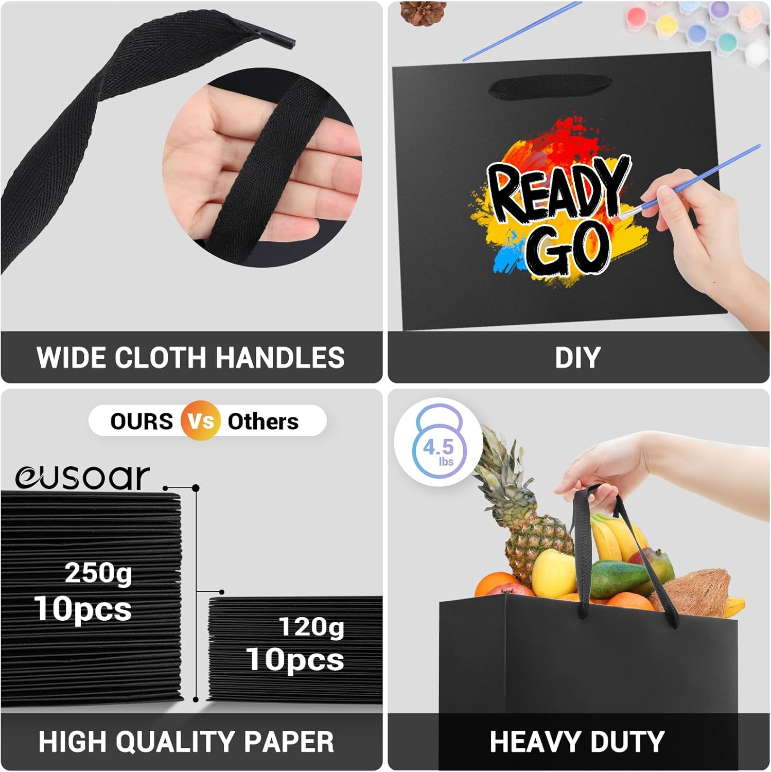 Sacchetti di carta EUSOAR: utilizziamo carta di qualità da 250 g/m², il set contiene 10 sacchetti di carta con manici (S 22x10x18 cm). Sacchetti regalo: i nostri sacchetti di carta nera sono perfetti per calendari dell'Avvento creativi fai-da-te e possono essere dipinti, confezionati e decorati individualmente. Sono realizzati in carta kraft ecologica e insapore, riutilizzabile. Ampio utilizzo: i sacchetti regalo neri dall'aspetto elegante sono perfetti per confezionare regali festivi come Natale, compleanno e Ringraziamento e possono essere utilizzati per una varietà di occasioni come feste e matrimoni. Dimensioni e qualità: i nostri sacchetti di carta di grande formato offrono molto spazio e sono realizzati con materiali di alta qualità. Sono robusti, resistenti agli strappi e resistono anche agli oggetti più pesanti. Manico con nastro regalo: i nostri sacchetti regalo con manici con nastro regalo sono l'accessorio perfetto per presentare i tuoi regali con stile. I nostri manici sono realizzati in tessuto di cotone spesso e bello e presentano un design geometrico unico che aggiungerà un tocco di eleganza alla tua borsa.