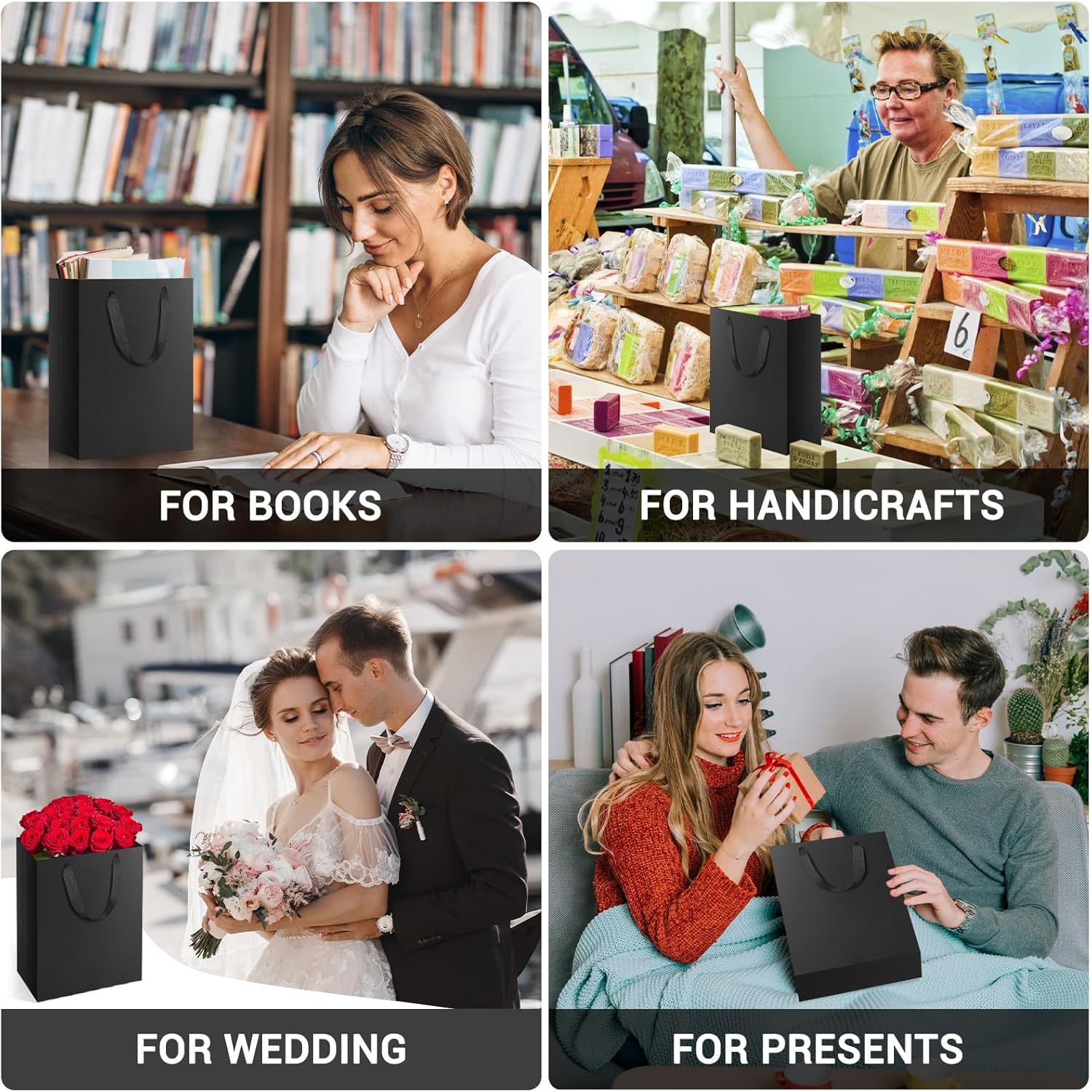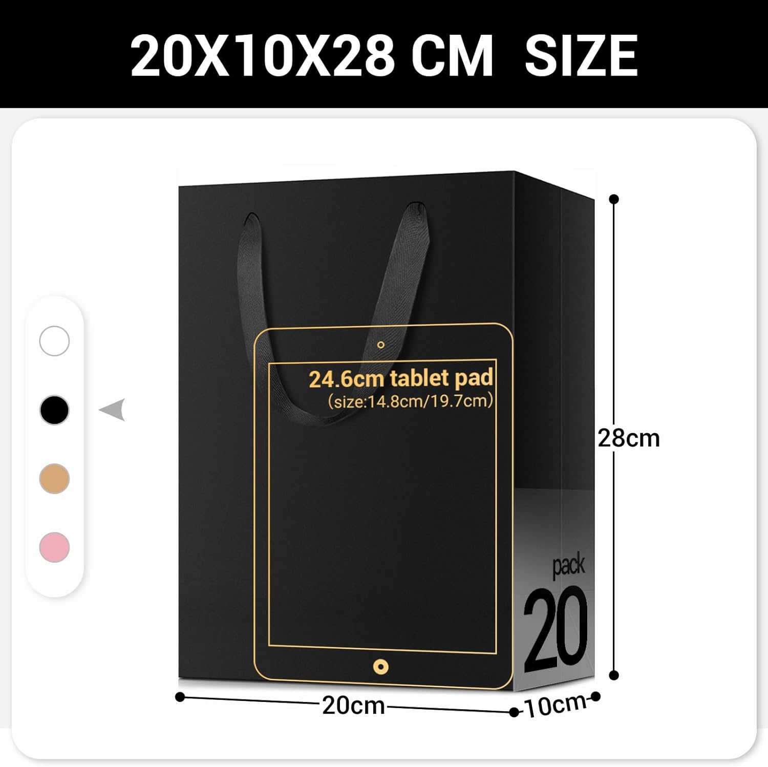 Sacchetti di carta EUSOAR --- Utilizziamo carta di qualità da 250 g/m², il set contiene 20 sacchetti di carta con manici (M 20x10x28 cm). Sacchetti regalo --- I nostri sacchetti di carta nera sono perfetti per calendari dell'Avvento creativi fai-da-te e possono essere dipinti, confezionati e decorati individualmente. Sono realizzati in carta kraft ecologica e insapore, riutilizzabile. Ampio utilizzo --- I sacchetti regalo neri dall'aspetto elegante sono perfetti per confezionare regali festivi come Natale, compleanno e Ringraziamento e possono essere utilizzati per una varietà di occasioni come feste e matrimoni. Dimensioni e qualità --- I nostri sacchetti di carta di grande formato offrono molto spazio e sono realizzati con materiali di alta qualità. Sono robusti, resistenti agli strappi e resistono anche agli oggetti più pesanti. Manico in nastro regalo --- I nostri sacchetti regalo con manici in nastro regalo sono l'accessorio perfetto per presentare i tuoi regali con stile. I nostri manici sono realizzati in tessuto di cotone spesso e bello e presentano un design geometrico unico che aggiungerà un tocco di eleganza alla tua borsa.