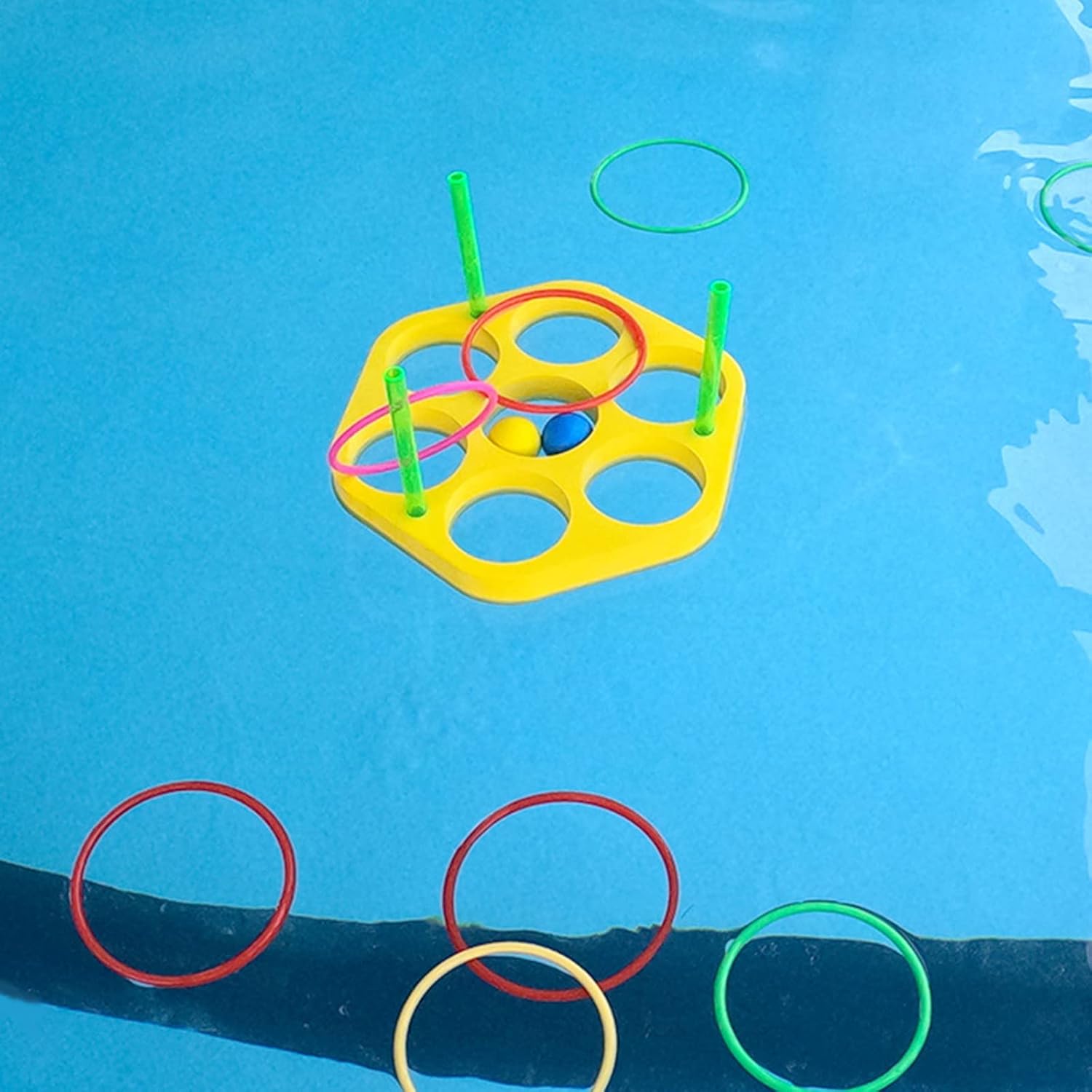 Caratteristiche: Questo gioco acquatico è utile per sviluppare destrezza, flessibilità, capacità motorie, pazienza e l'importanza della squadra per i giochi in piscina dei bambini. Oggetti di scena: questo è un fantastico gioco in piscina che promuove l'allenamento. Costruito portatile per le vacanze: il giocattolo per sport acquatici della squadra presenta un pacchetto leggero e facile da trasportare, adatto per le vacanze. Esplora più divertimento più divertimento Schiuma galleggiante durevole, EVA realizzata con set EVA: Fun Pool Games sono giochi giocattolo per piscine familiari, includono 12 palline da lancio e 1 tavola galleggiante per PC e 12 anelli da lancio
