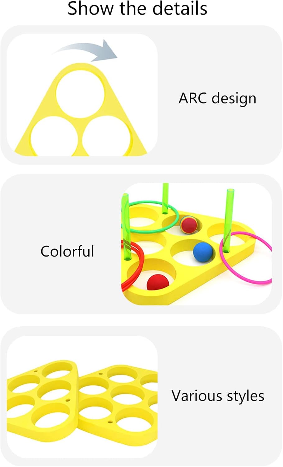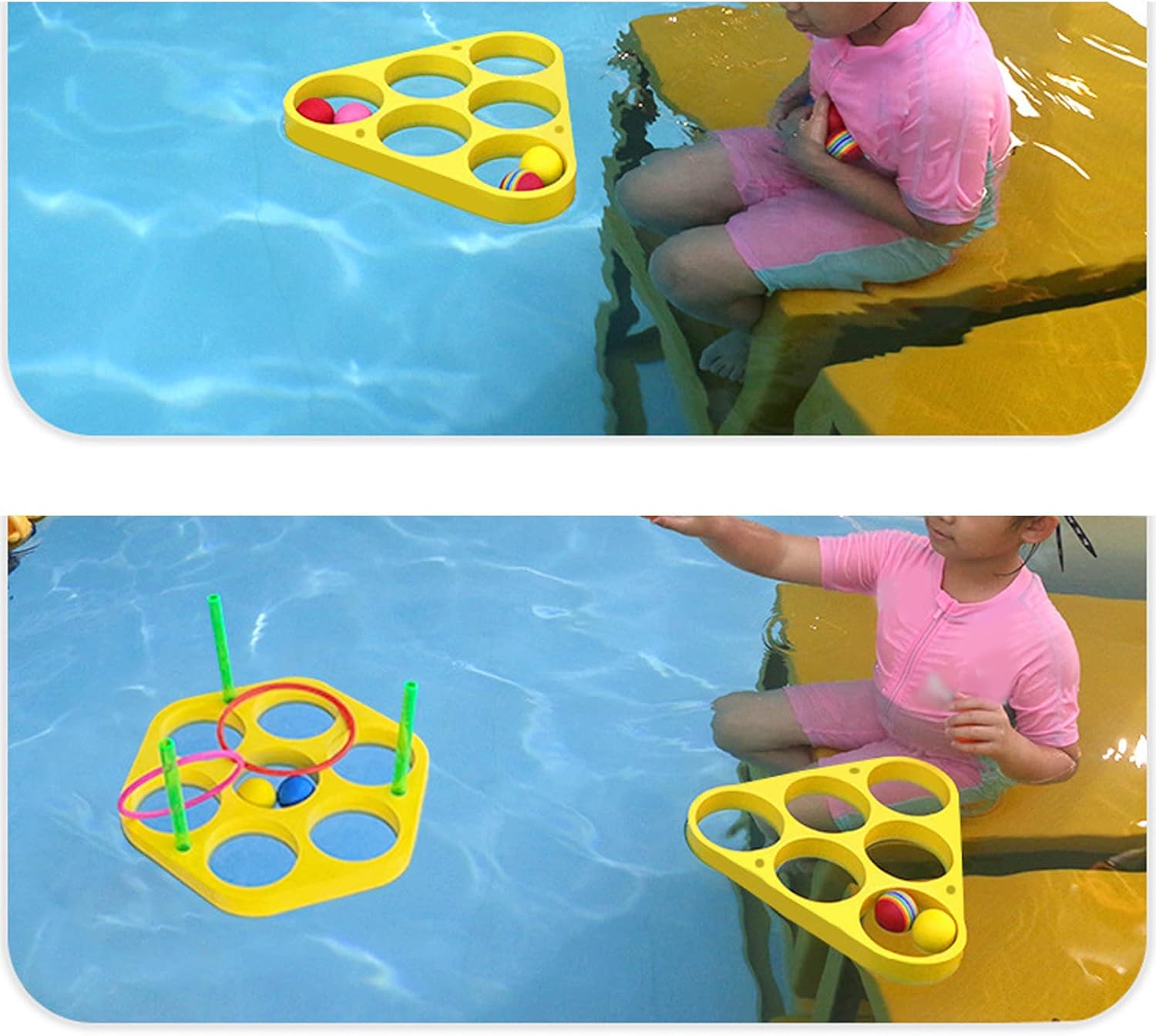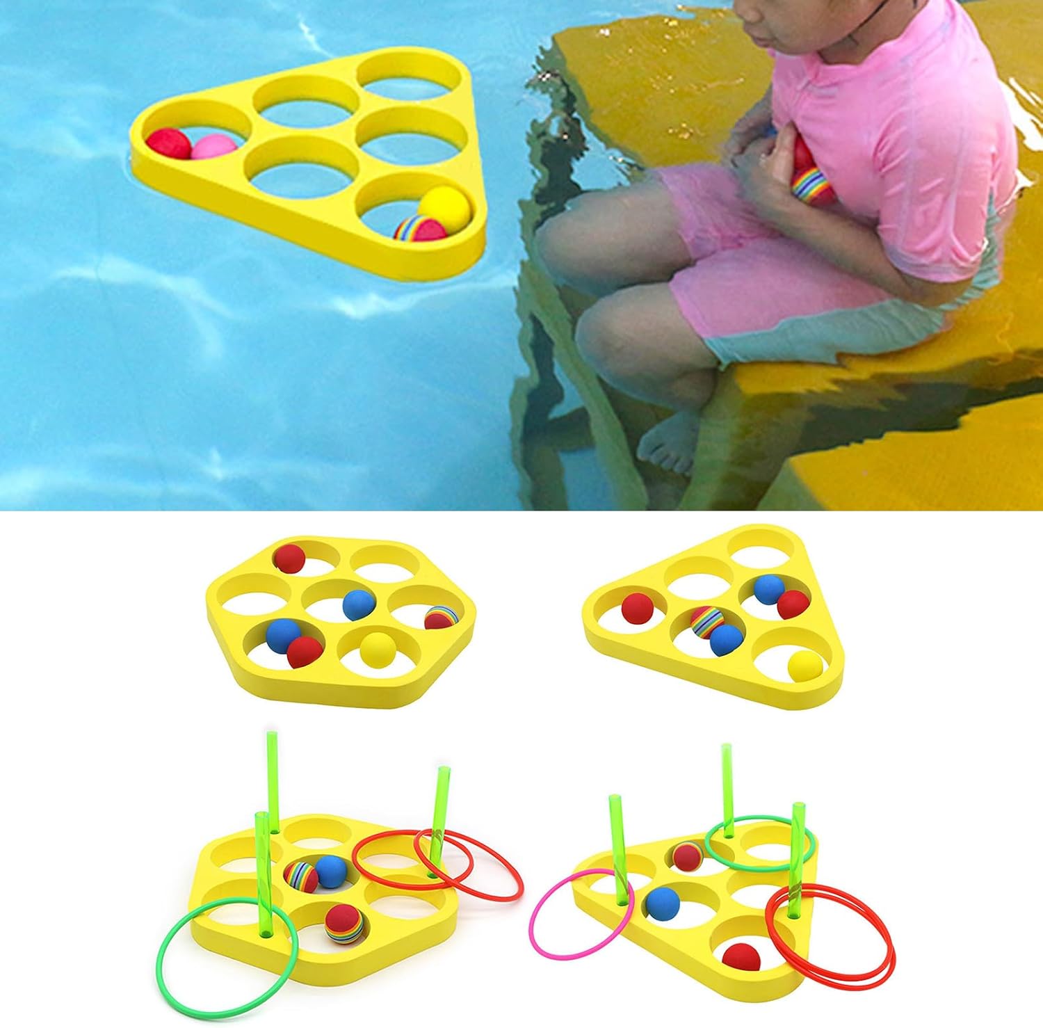 Schiuma galleggiante resistente, EVA realizzata con set Eva: Fun Pool Games sono giochi giocattolo per piscine familiari, includono 12 palline da lancio e 1 tavola galleggiante per PC e 12 anelli da lancio Accessori per giochi in piscina: questo è un fantastico gioco di biliardo che promuove l'allenamento. Costruito portatile per le vacanze: il giocattolo per sport acquatici della squadra presenta un pacchetto leggero e facile da trasportare, adatto per le vacanze. Esplora più divertimento, più divertimento Caratteristiche: Questo gioco acquatico è utile per sviluppare la destrezza, la flessibilità, le capacità motorie, la pazienza e l'importanza della squadra dei bambini