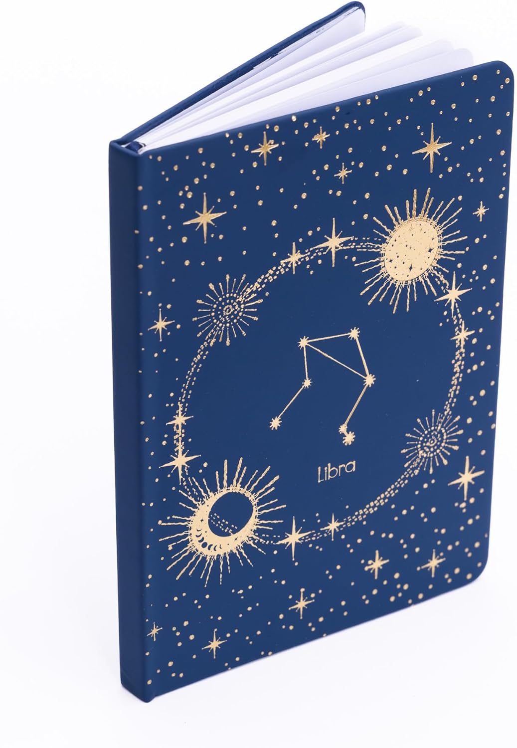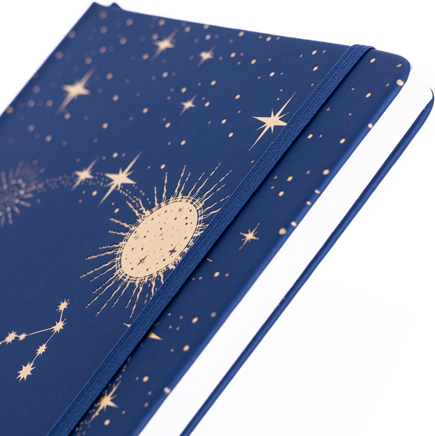 Quaderno A5 con copertina rigida con copertina dorata dello zodiaco 12 design unici di segni zodiacali tra cui scegliere 64 fogli/128 pagine a righe di carta premium da 80 g/m² Include nastro segnalibro e fascia elastica di chiusura Ideale per diario, appunti, lavoro, scuola o come regalo