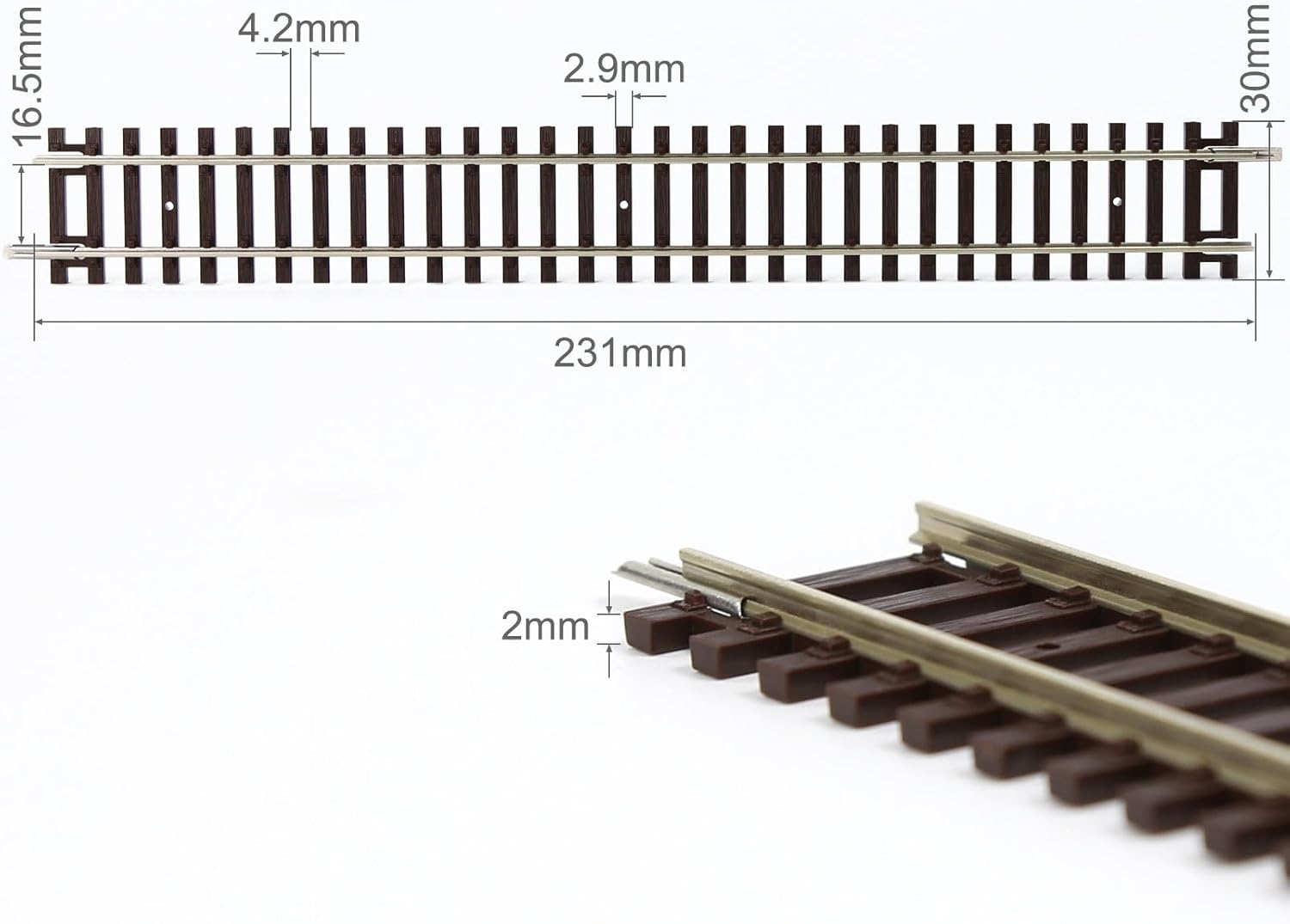 Materiale: è fatto di parte in plastica e guida in rame-nichel. Corsia: pista H0, 1:87. I binari si collegano tramite connettori a binario e supportano il funzionamento DC e DCC, rendendoli ideali per impianti espandibili e realistici. Specifiche: Connettori a binario integrati per collegamenti elettrici sicuri e allineamento. I binari conclusivi in scala H0 sono componenti essenziali per i modellini ferroviari che garantiscono sistemi di binari fluidi e affidabili.