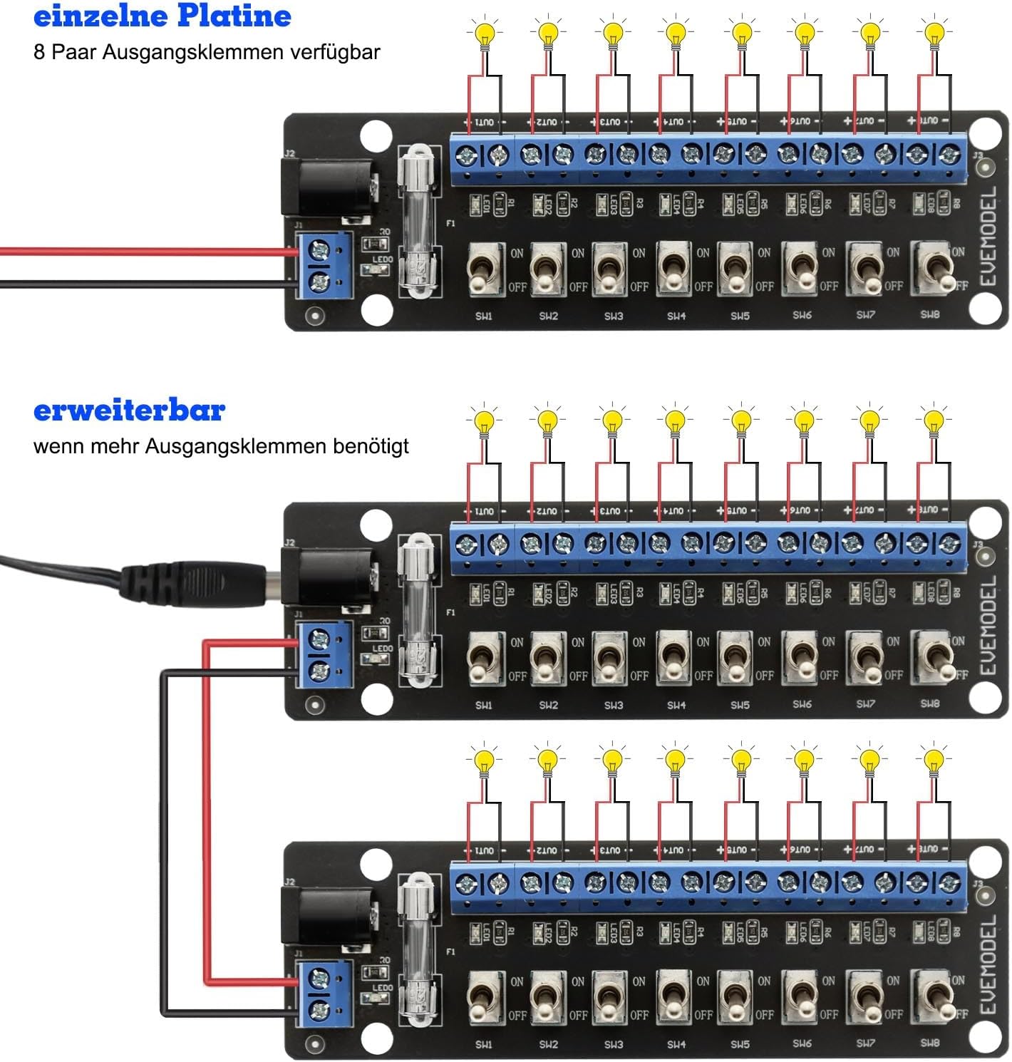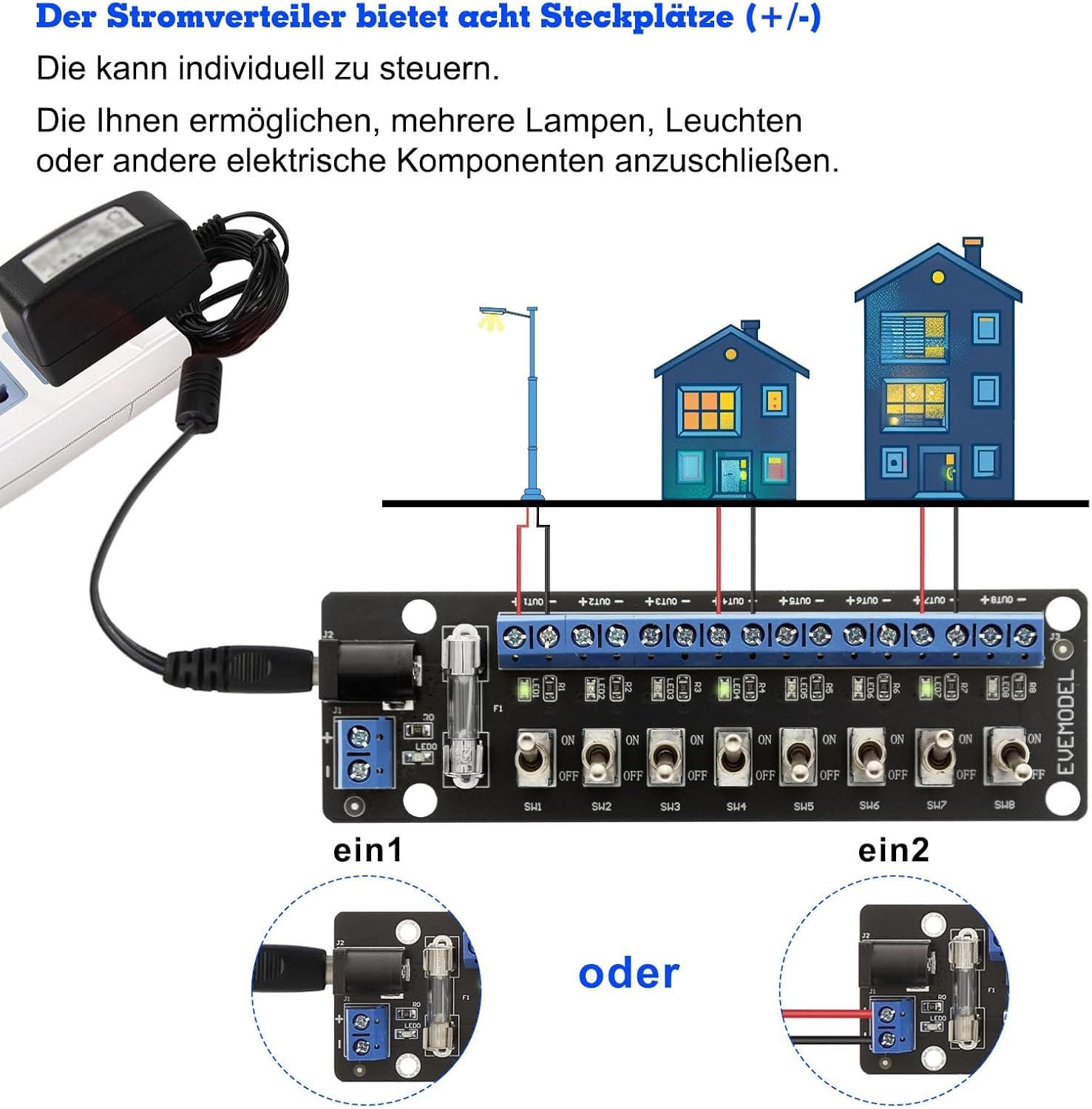 Evemodel 1 set da 3 – 24 V, 8 interruttori miniaturizzati DC, controllo del cambio, distributore di corrente