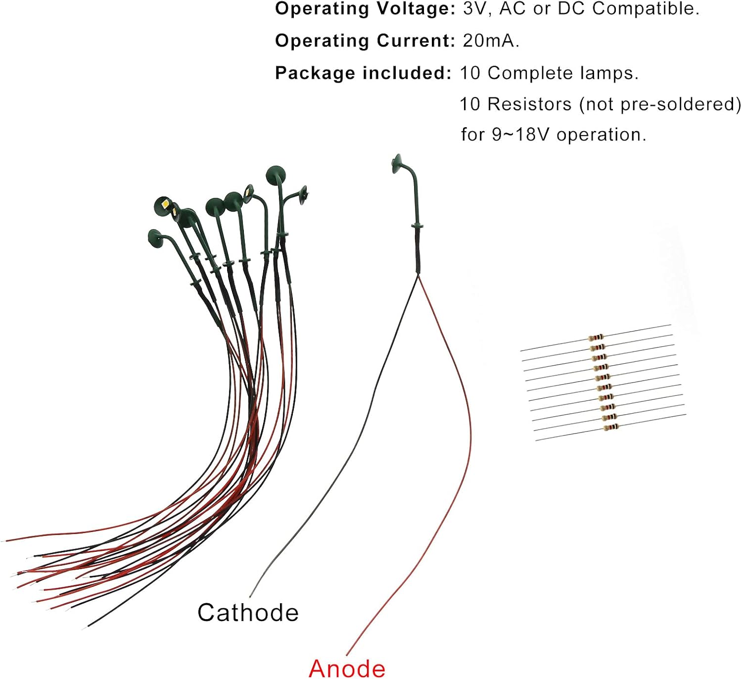 Scala: 1:87, adatta per scartamento H0. Fornitura: 10 pezzi. lampade complete e 10 pezzi. Resistenze. Il prodotto è alimentato da batterie. Realizzato con LED bianco. Perfetto per il layout di treni ed edifici!