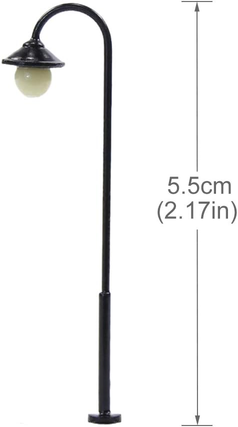 Altezza: ca. 55 mm. Voltaggio operativo: 3V. Corrente operativa: 20 mA. Materiale: palo in rame. Realizzato con LED bianco caldo. Scala: 1:87, adatta per scartamento H0.