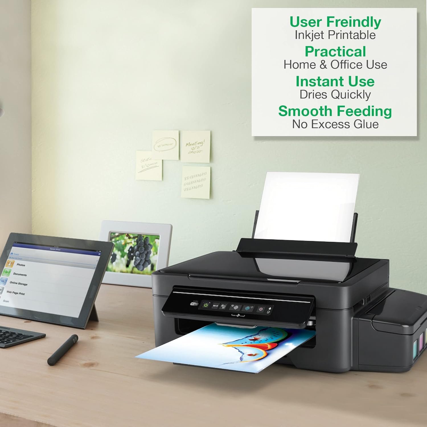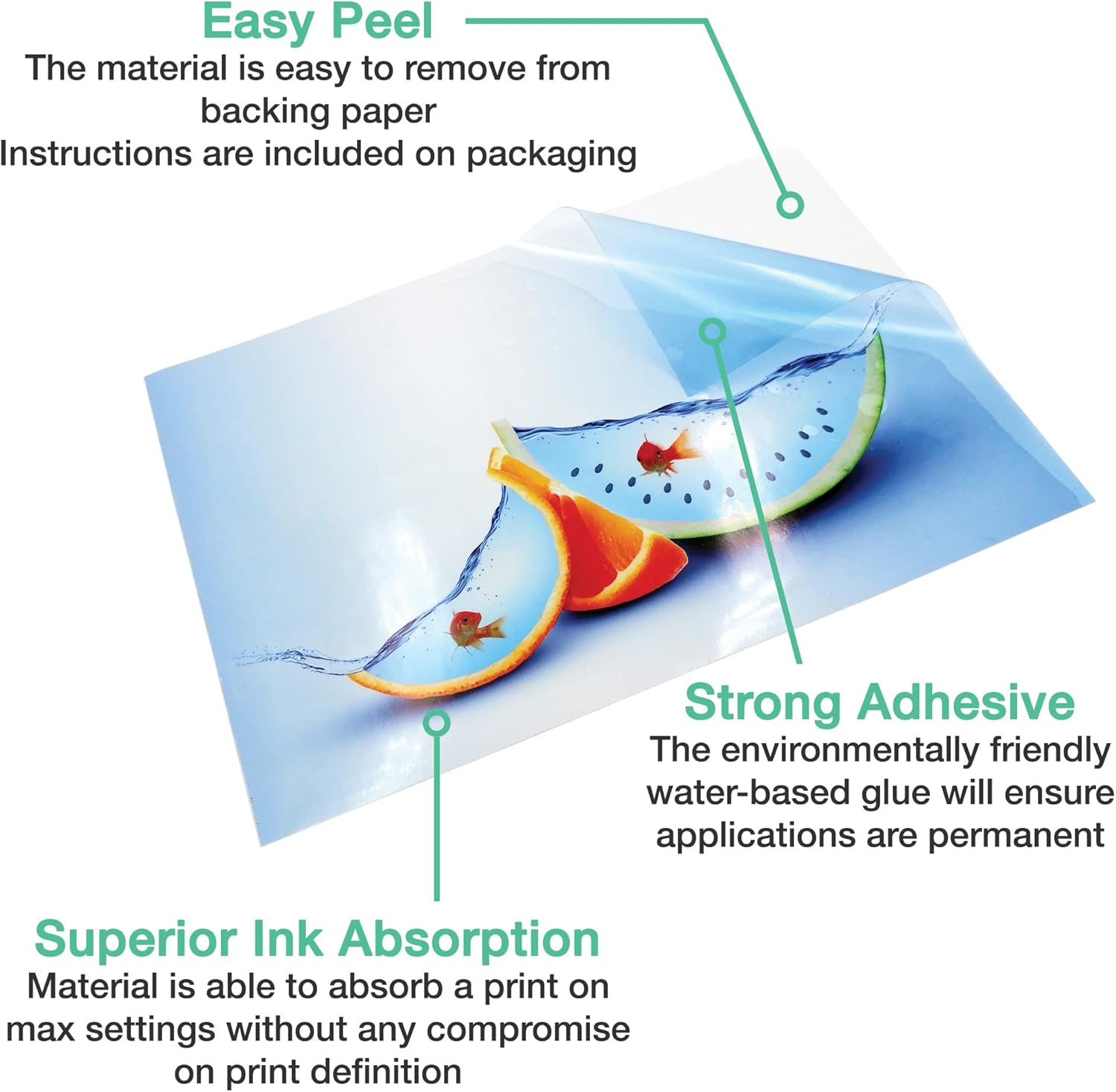 Fogli di vinile lucido trasparente, formato A4. Progettati per stampa a inchiostro di alta qualità. Stampa ad alta risoluzione. Formato A4. Dimensioni: 210 x 297 mm. Facili da usare: si possono stampare e tagliare nel formato desiderato. Adatti per creare cartelli e adesivi per bambini.