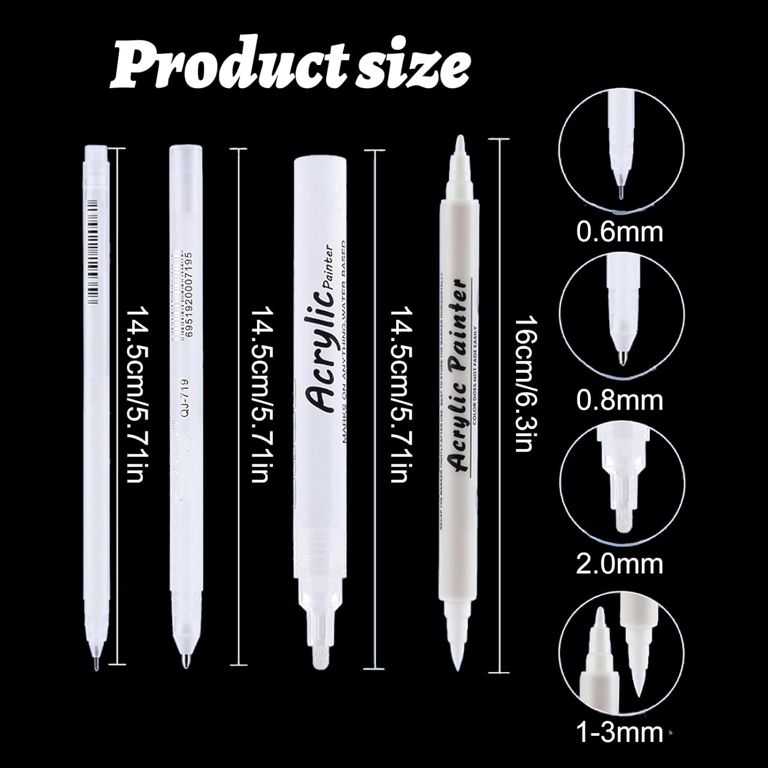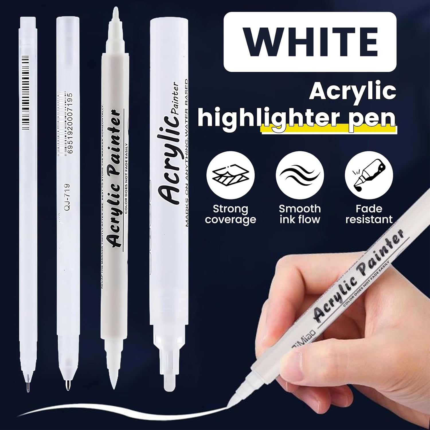 Ampiamente usato per disegnare/scrivere carta nera, scrapbooking, creazione cartoline, journaling, disegni architettonici progetti, annotazioni lavagne in classe e progetti artigianato artistico che richiedono marcature accattivanti superfici scure (4 Pennarelli con inchiostri acrilici resistenti all'acqua e asciugatura rapida, adatti per disegnare o scrivere carta scura, risolvendo i problemi visibilità affrontati dai pennarelli tradizionali creando stesso effetti artistici sorprendenti Costruiti con involucro in ABS maggiore resistenza alle cadute e colorazione resistente sbiadimento, questi pennarelli a vernice acrilica bianca resistono all'usura quotidiana per un'affidabilità a lungo termine in aule e studi Progettata con punta a tenuta stagna e inchiostri asciugatura rapida, questa penna acrilica garantisce stratificazione uniforme senza sbavature, rispettando stesso standard sicurezza per progetti artistici creativi adatti a tutta la famiglia Adatto per studenti che evidenziano libri artisti che disegnano carta nera e presentazioni professionali che richiedono bianca nitida in varie condizioni illuminazione