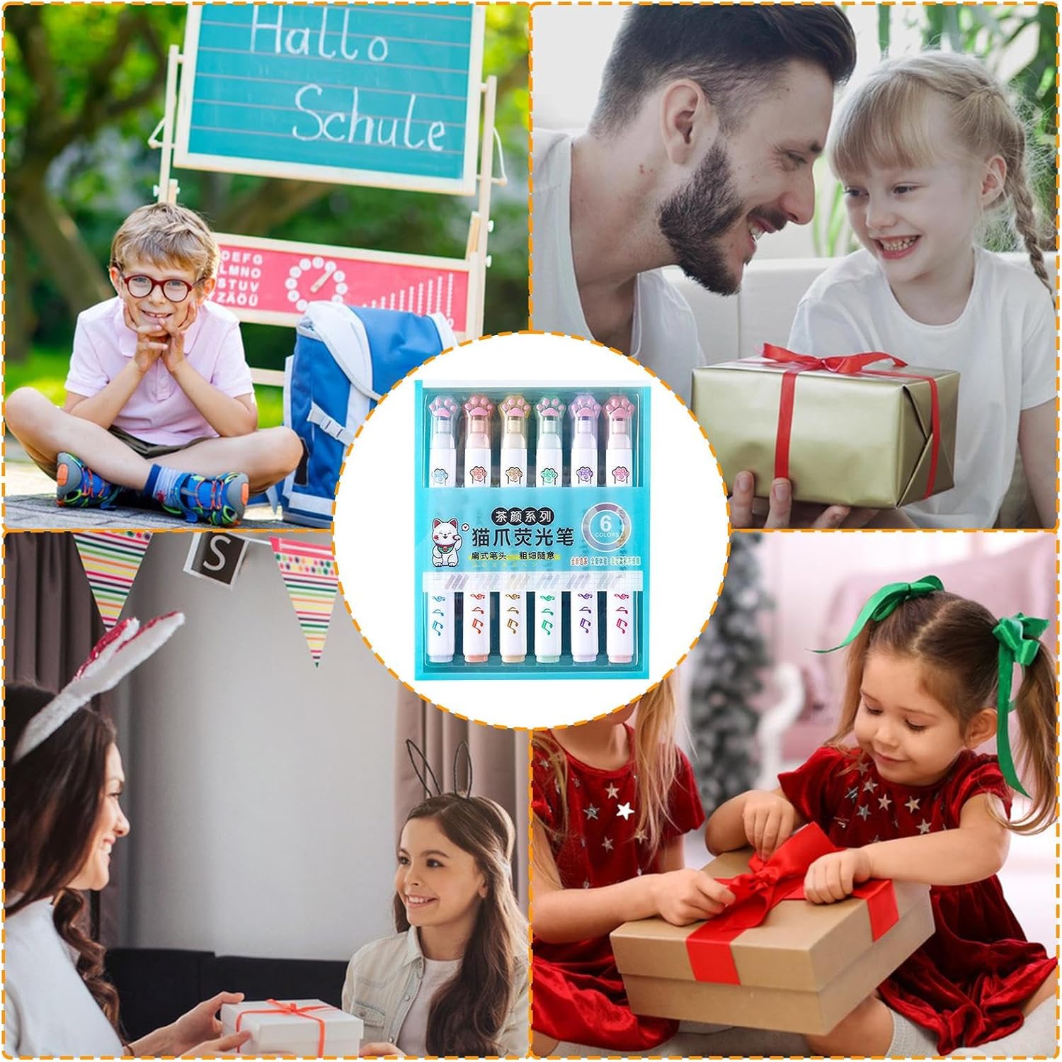 Il massimo comfort di scrittura: sperimenta il massimo comfort di scrittura con un evidenziatore ad asciugatura rapida. L'inchiostro si asciuga rapidamente, fornendo un aspetto nitido e morbido e mantiene le note facili da leggere. L'impugnatura comoda e l'inchiostro rapido offrono un'esperienza di scrittura senza problemi senza sporcizia o sanguinamento sulla carta. Facile da usare: usa il nostro evidenziatore per scrivere facilmente e con precisione. L'inchiostro si asciuga rapidamente e non si sporca. Il design è progettato per essere comodo e facile da usare e ti piace la sensazione di scrittura . Questo pacchetto contiene 6 pezzi. Durabilità senza pari: i nostri evidenziatori sono fatti per durare più a lungo utilizzando materiali eccellenti e controllo di qualità rigoroso, garantendo punte di fibre durevoli e componenti resistenti all'usura per una lunga vita. Sorprenditi con amore: aggiungi un tocco di amore al tuo regalo con questo evidenziatore del festival. per ragazze e ragazzi di tutte le età, rendendolo il regalo per ogni occasione. Condividi le gioie di scrivere, colorare e disegnare con i tuoi cari. Multipurpo: i nostri evidenziatori sono efficienti e versatili per lettere, prese di appunti, scrapbooking, diari, carte e altro ancora. Il design facile da trattenere e il flusso di inchiostro liscio solleveranno l'. Usali per aggiungere vitalità e colore al tuo lavoro e alla vita.