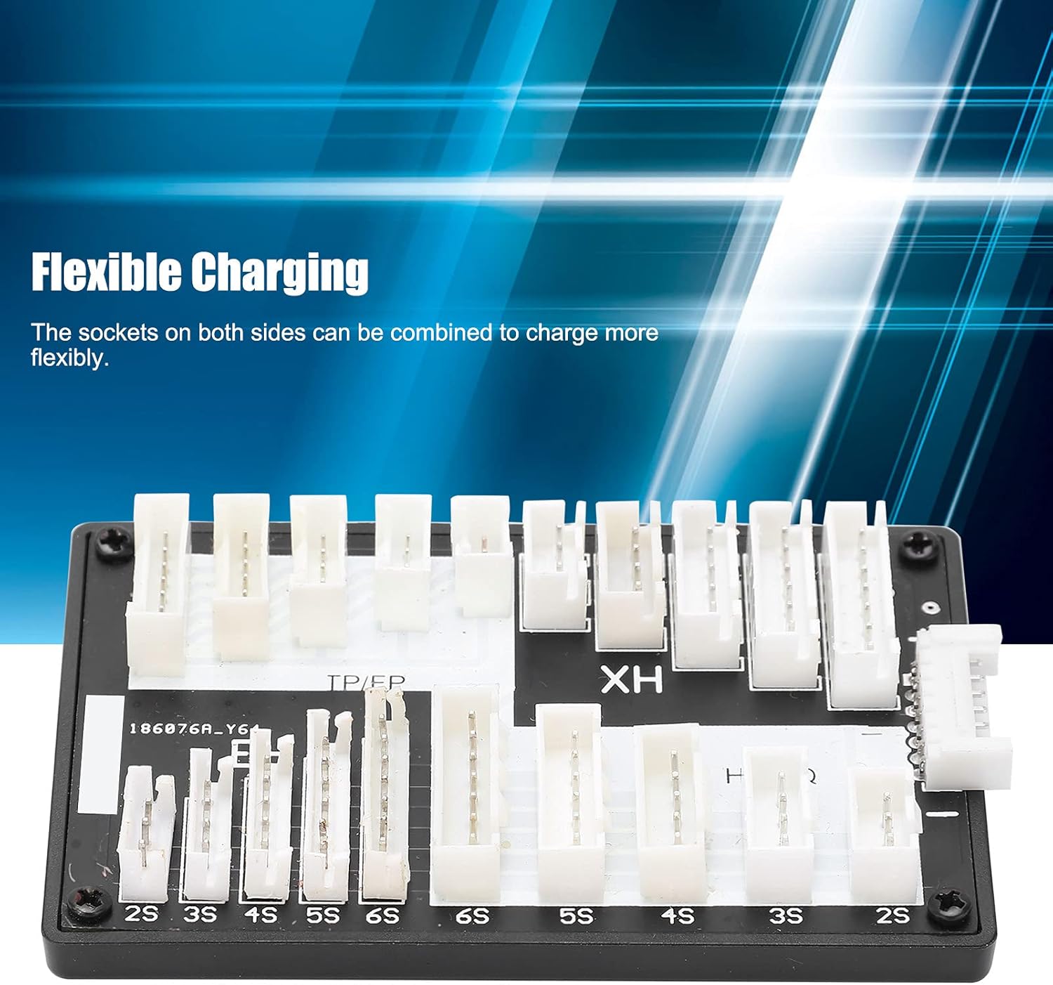 Compatibilità versatile: la nostra bilancia supporta connettori JST-XH, JST-EH, TP, FP, coprendo un'ampia gamma di tipi di batterie 2-6S. Garantisce la compatibilità con marchi famosi come HP/PQ, TP/FP, XH ed EH, rendendolo adatto a vari modelli di veicoli e droni. Processo di ricarica semplificato: dì addio alla sostituzione ripetuta delle batterie. La nostra scheda caricabatterie elimina il fastidio consentendo di caricare le batterie contemporaneamente. Questo non solo fa risparmiare tempo, ma ti tiene anche in aria per periodi più lunghi, migliorando la tua esperienza RC. Facile plug-and-play: collegare la spina bilanciata di tipo JST-XH al caricabatterie ora è un gioco da ragazzi. Con la nostra scheda, puoi stabilire facilmente una connessione sicura ed efficiente, garantendo ogni volta un processo di ricarica affidabile. Dedica meno tempo ad armeggiare con i cavi e più tempo a goderti le tue avventure RC. Opzioni di ricarica flessibili: la scheda di ricarica dell'equilibrio è dotata di più prese, offrendo opzioni versatili per la ricarica. Puoi facilmente combinare diversi connettori per soddisfare le tue specifiche esigenze di ricarica. Questa flessibilità ti consente di personalizzare la tua configurazione di ricarica, garantendo prestazioni ottimali per le tue batterie. Design pratico e intuitivo: comprendiamo l'importanza della chiarezza durante il processo di ricarica. Ecco perché la nostra scheda viene fornita con un cavo piatto in più colori. Questo design accurato consente un facile riconoscimento e funzionamento, garantendo un'esperienza senza soluzione di continuità e di facile utilizzo.