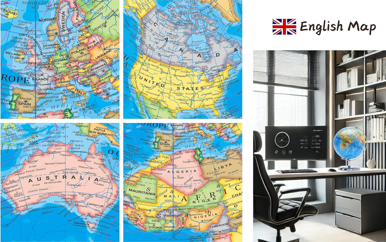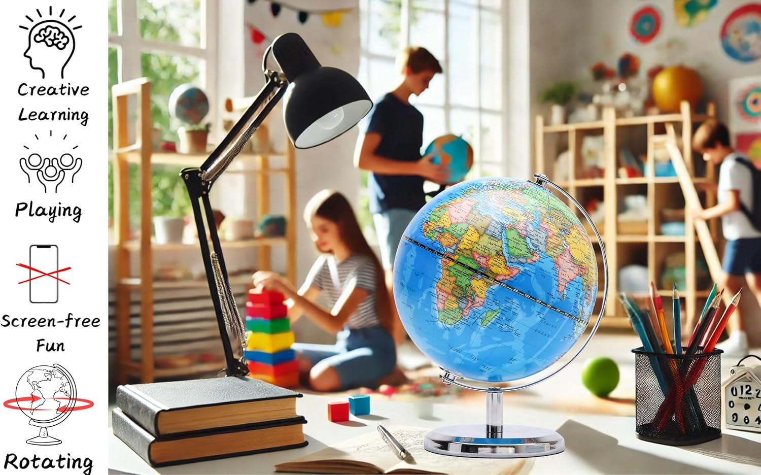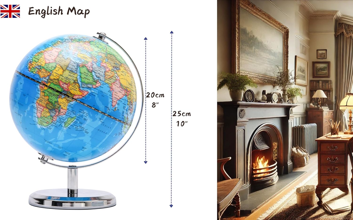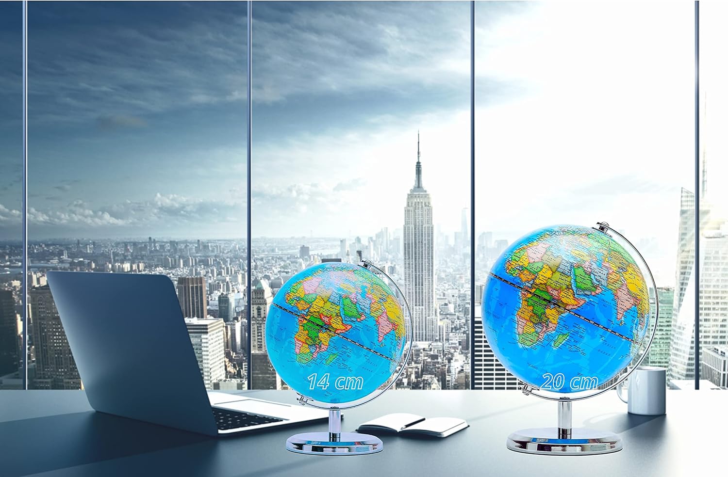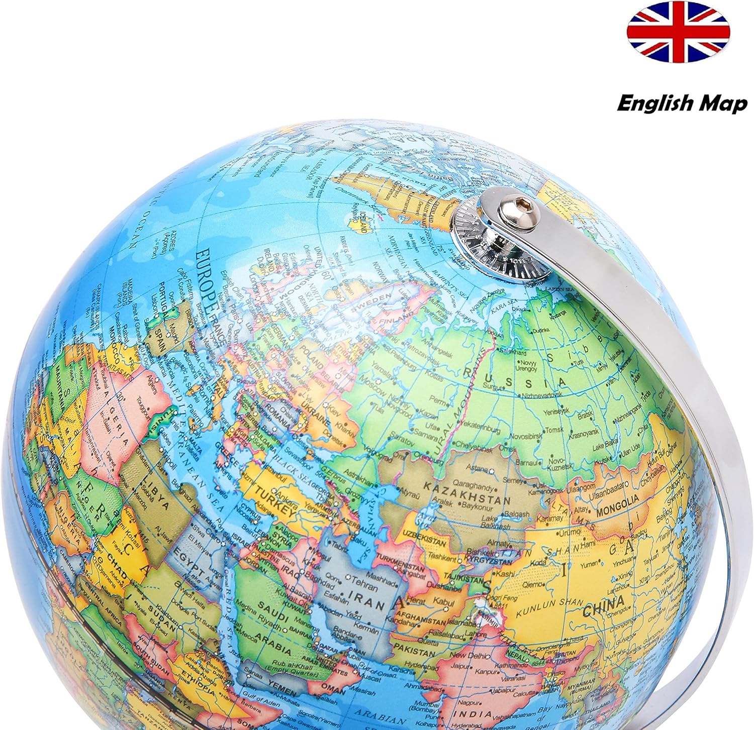 Più che decorazione: Exerz 20cm Mappamondo/ Globo ha una stampa di alta qualità, fine e chiara, ha portato ad un'esperienza molto facile e piacevole quando si legge la sfera geografica. Esso mostra paesi, confini politici, capitali, grandi città e altro ancora, sentitevi liberi di usarlo ogni giorno e riferirvi ad esso in qualsiasi momento. Divertente e educativo: il nostro globo ha dettagli aggiornati, incoraggia i bambini curiosi ad esplorare il mondo della scienza con le proprie mani e occhi. I bambini possono essere in grado di esplorare i continenti che hanno o non sono stati, individuare un posto e scoprire cosa c'è sopra, e cosa c'è intorno a esso, sarebbero incoraggiati a leggere e riconoscere il fatto della terra geograficamente e storicamente. Aspetto metallico: bellissimo globo accattivante, con un arco e base in acciaio inox più lucido e antiruggine, perfetto per la decorazione della casa e dell'ufficio, come un look elegante e moderno, o semplicemente si abbina al colore del punto scelto. Alta qualità: il prodotto stesso ruota su un supporto robusto, altezza incluso supporto: 25,5 cm. Usiamo il miglior materiale che siamo in grado di utilizzare nell'industria, che includono acciaio inossidabile, inchiostro di alta qualità e così via. Obiettivo di garantire che questo globo sia un vero lusso, senza delusioni. Non adatto per bambini sotto i 3 anni. La mappa è in inglese, non italiano.